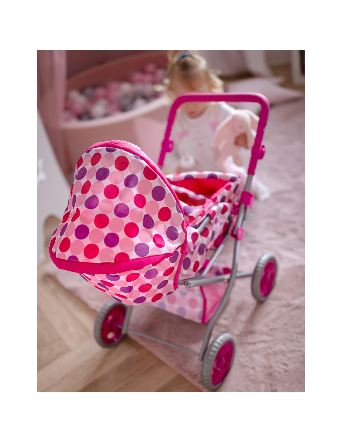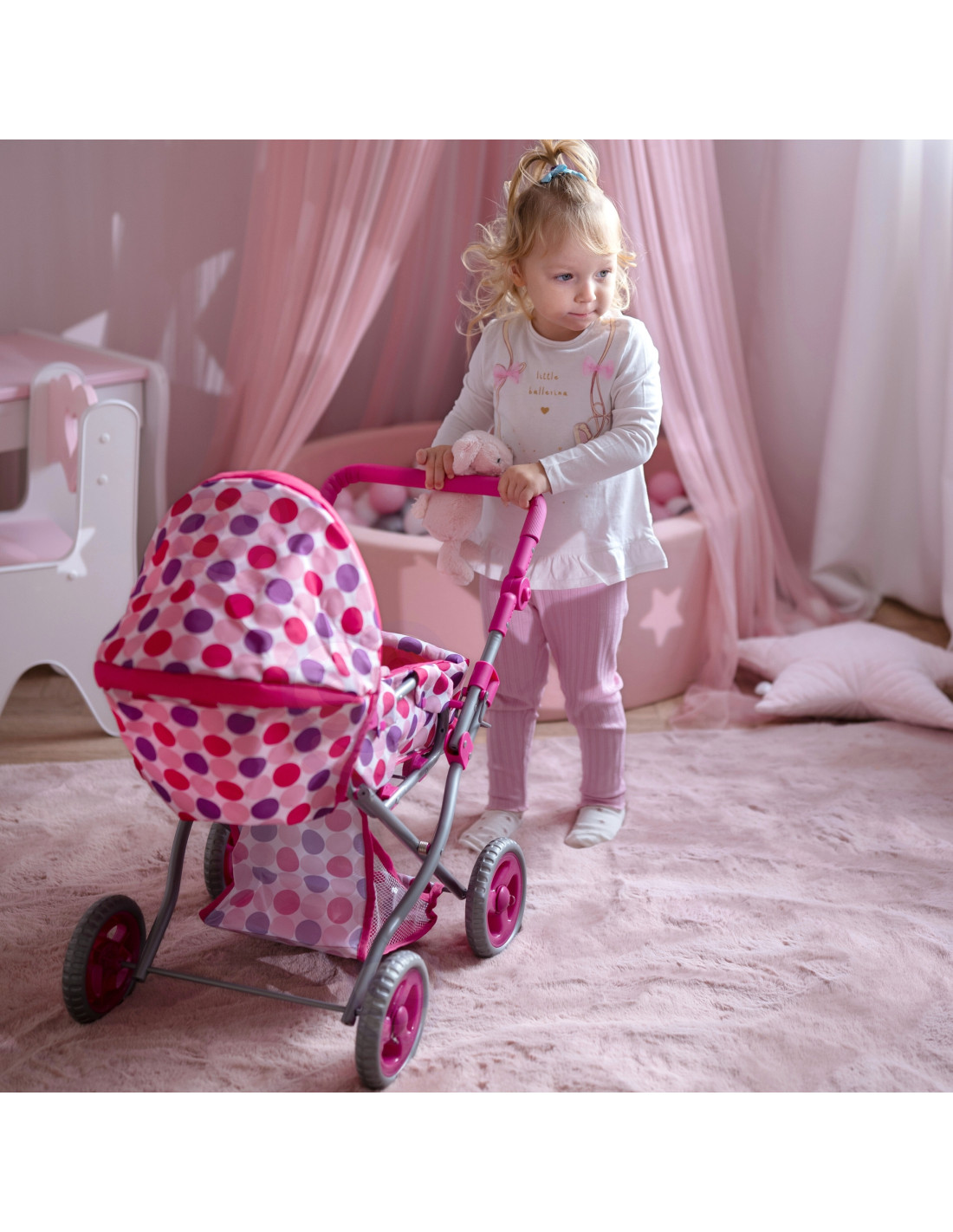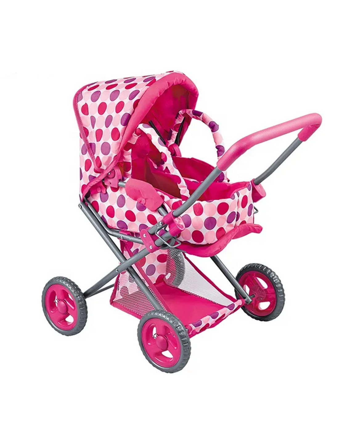 Stylowy i funkcjonalny wózek dla lalek od marki WOOPIE ROYAL w kolorze różowe kropki to idealna propozycja dla każdej małej miłośniczki zabawy lalkami! Wózek posiada regulowaną rączkę, co pozwala na dostosowanie go do wzrostu dziecka. Jego ciche koła gwarantują płynność w prowadzeniu, a stabilna konstrukcja zapewnia bezpieczną zabawę. Dodatkowo wózek zamienia się w spacerówkę, a dzięki wyjmowanej części może być także nosidełkiem lub torbą. Wózek posiada daszek, który można wysuwać i zamykać oraz pojemny kosz na drobiazgi.