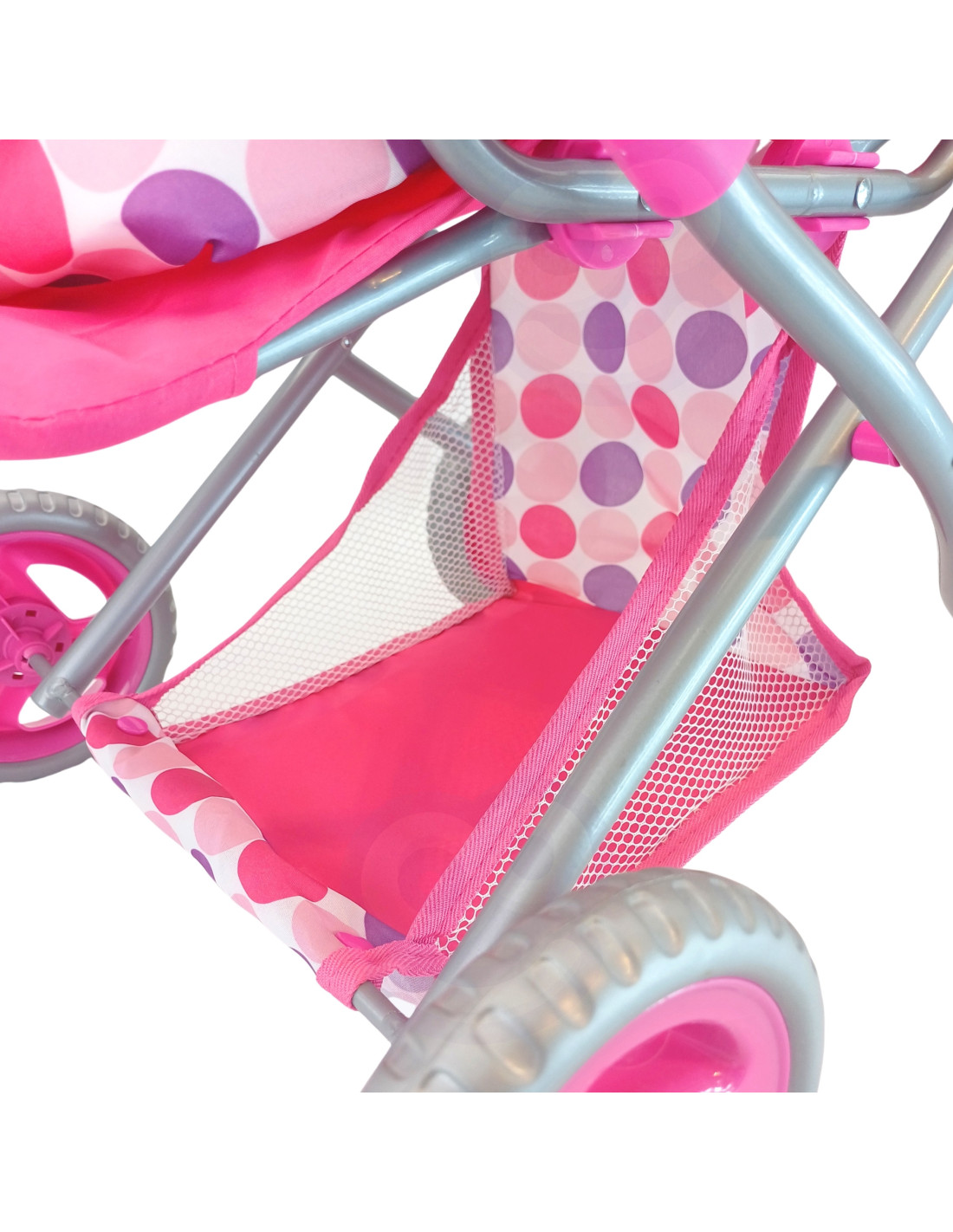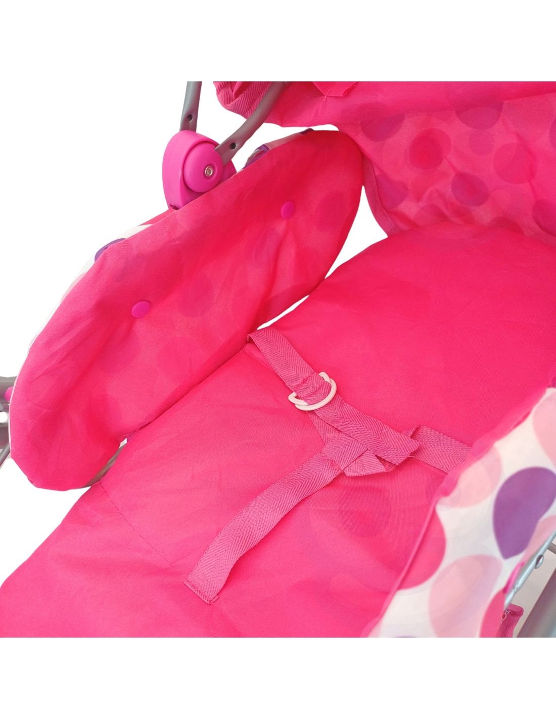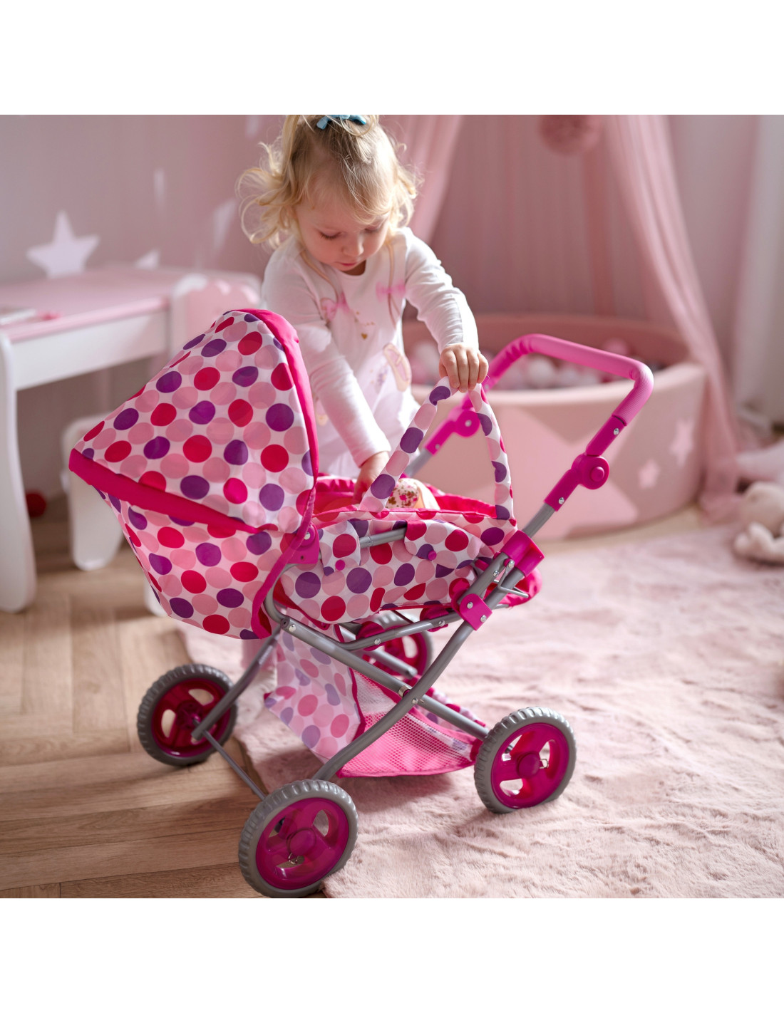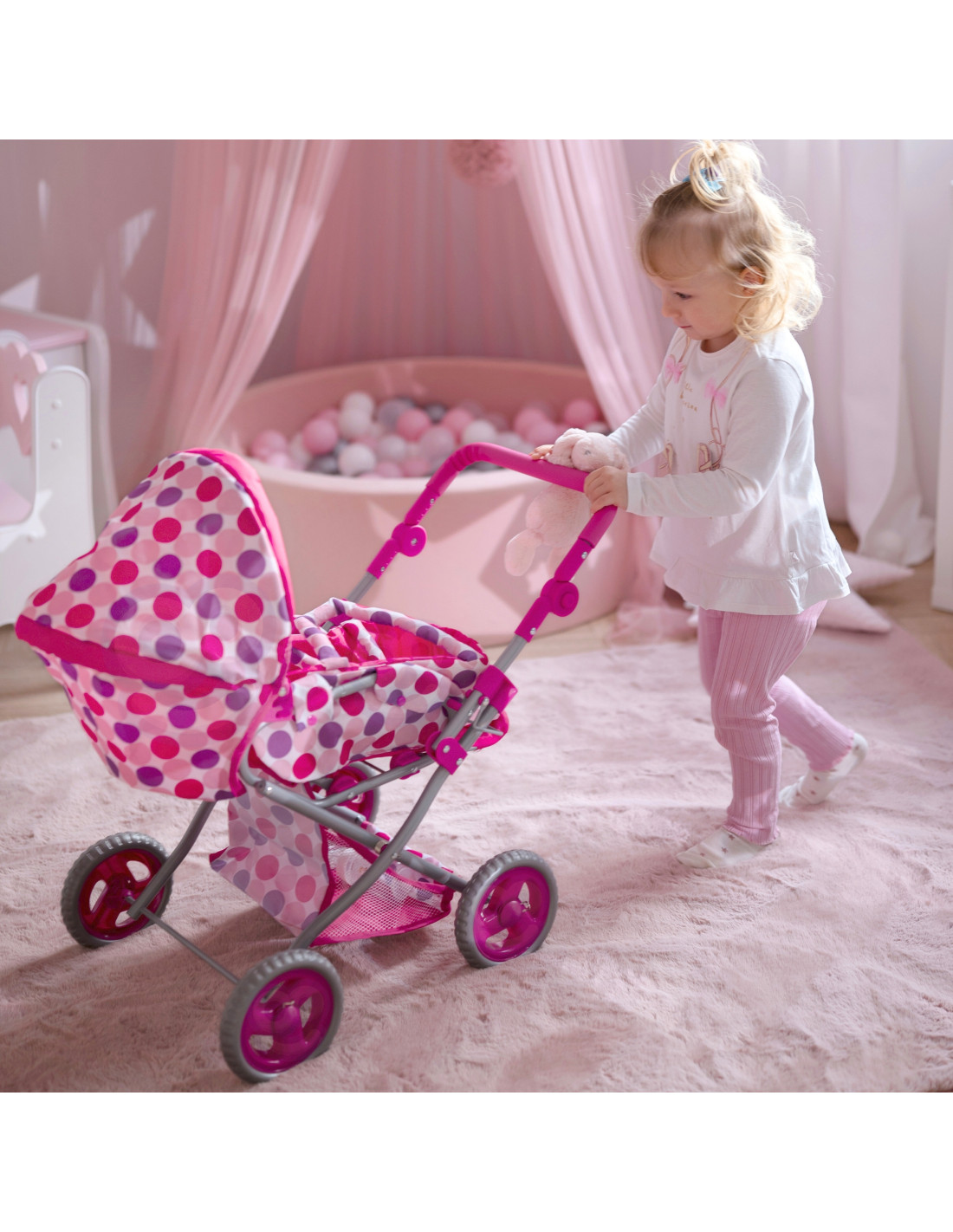 Stylowy i funkcjonalny wózek dla lalek od marki WOOPIE ROYAL w kolorze różowe kropki to idealna propozycja dla każdej małej miłośniczki zabawy lalkami! Wózek posiada regulowaną rączkę, co pozwala na dostosowanie go do wzrostu dziecka. Jego ciche koła gwarantują płynność w prowadzeniu, a stabilna konstrukcja zapewnia bezpieczną zabawę. Dodatkowo wózek zamienia się w spacerówkę, a dzięki wyjmowanej części może być także nosidełkiem lub torbą. Wózek posiada daszek, który można wysuwać i zamykać oraz pojemny kosz na drobiazgi.
