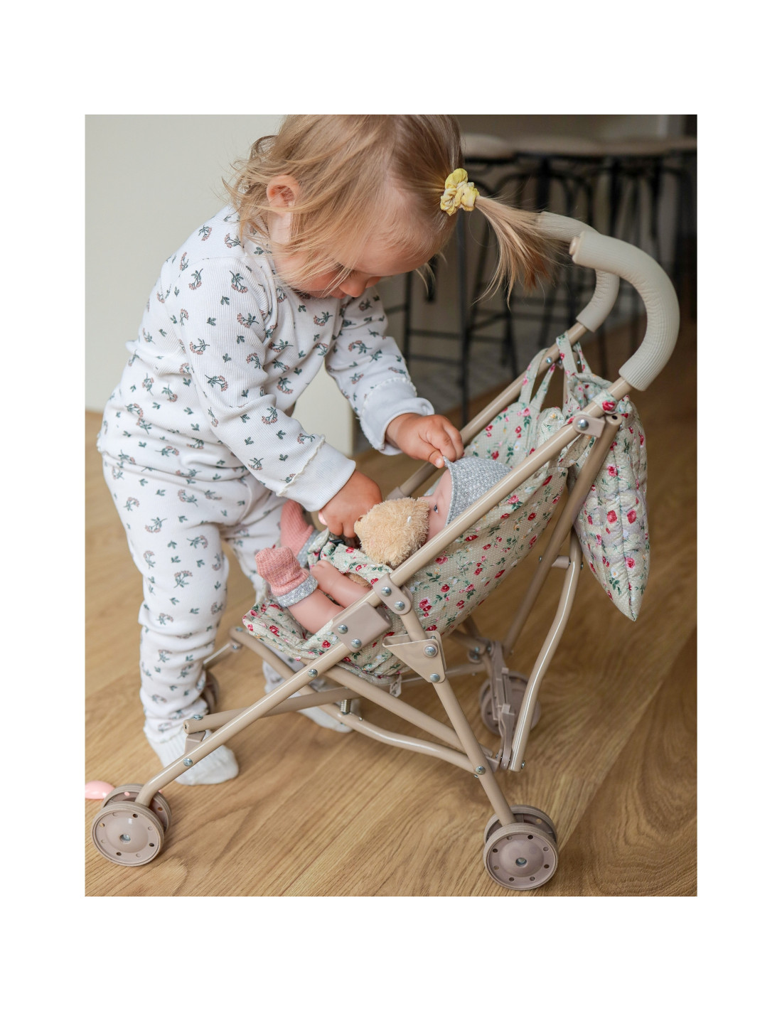 Wózek spacerówka dla lalek w kwiatowy wzór od marki Woopie to idealna zabawka dla każdej dziewczynki i chłopca, którzy uwielbiają bawić się w dom i opiekować swoimi ulubionymi laleczkami lub pluszakami. Dzięki lekkiej, składanej konstrukcji jest łatwy do przenoszenia i świetnie sprawdzi się zarówno w domu, jak i podczas spacerów na świeżym powietrzu. Wygodne uchwyty dopasowane do dziecięcych dłoni oraz podwójne kółka zapewniają komfort jazdy. Stylowa tapicerka w kremowym kolorze z uroczym kwiatowym wzorem dodaje mu wyjątkowego charakteru. To wspaniała propozycja na prezent, który rozwija wyobraźnię, empatię i zdolności manualne dziecka.