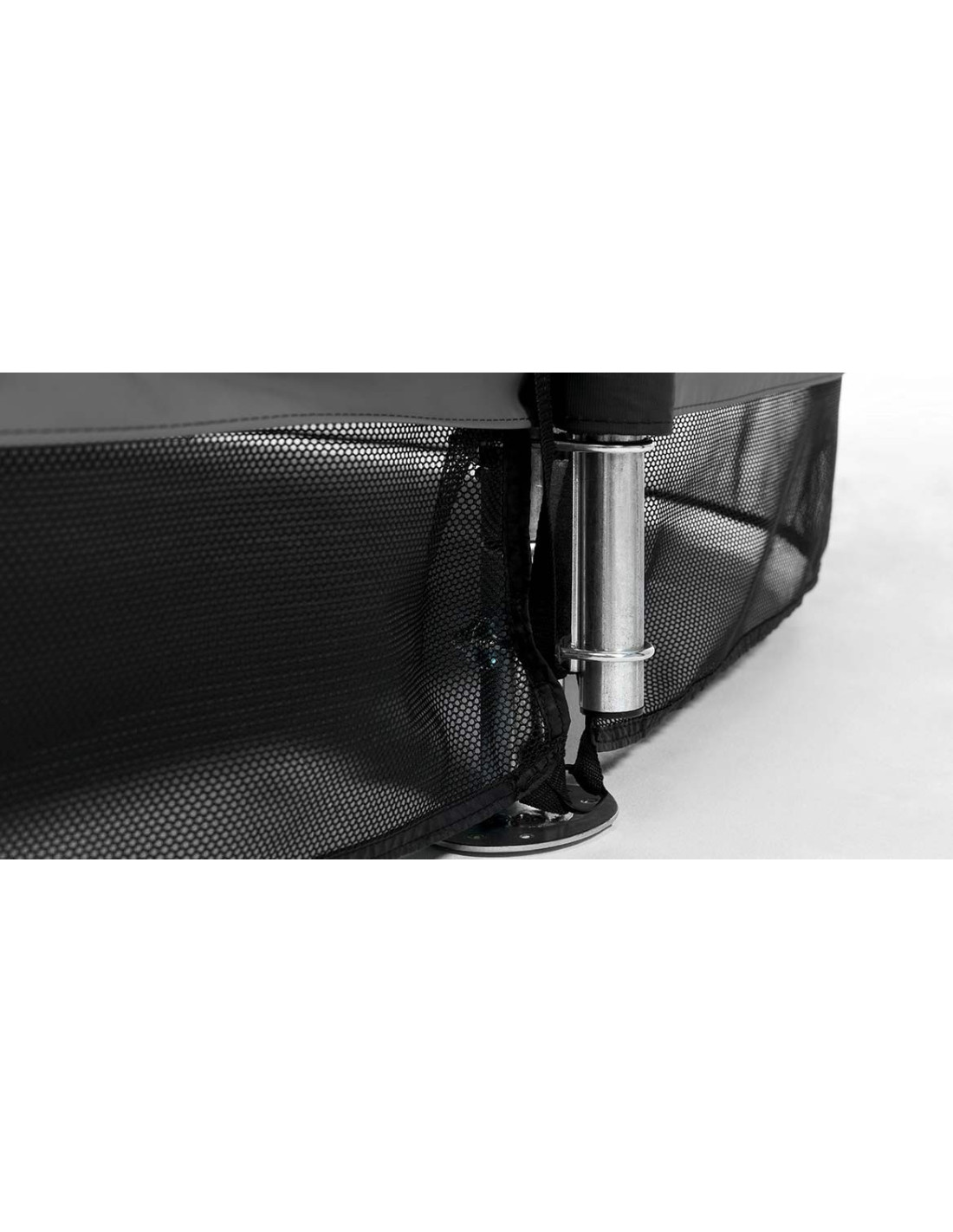 - - Konstrukcja trampoliny i siatki jest bardzo bezpieczna ze względu na stabilną konstrukcję oraz stalowe zaciski i elementy montażowe.