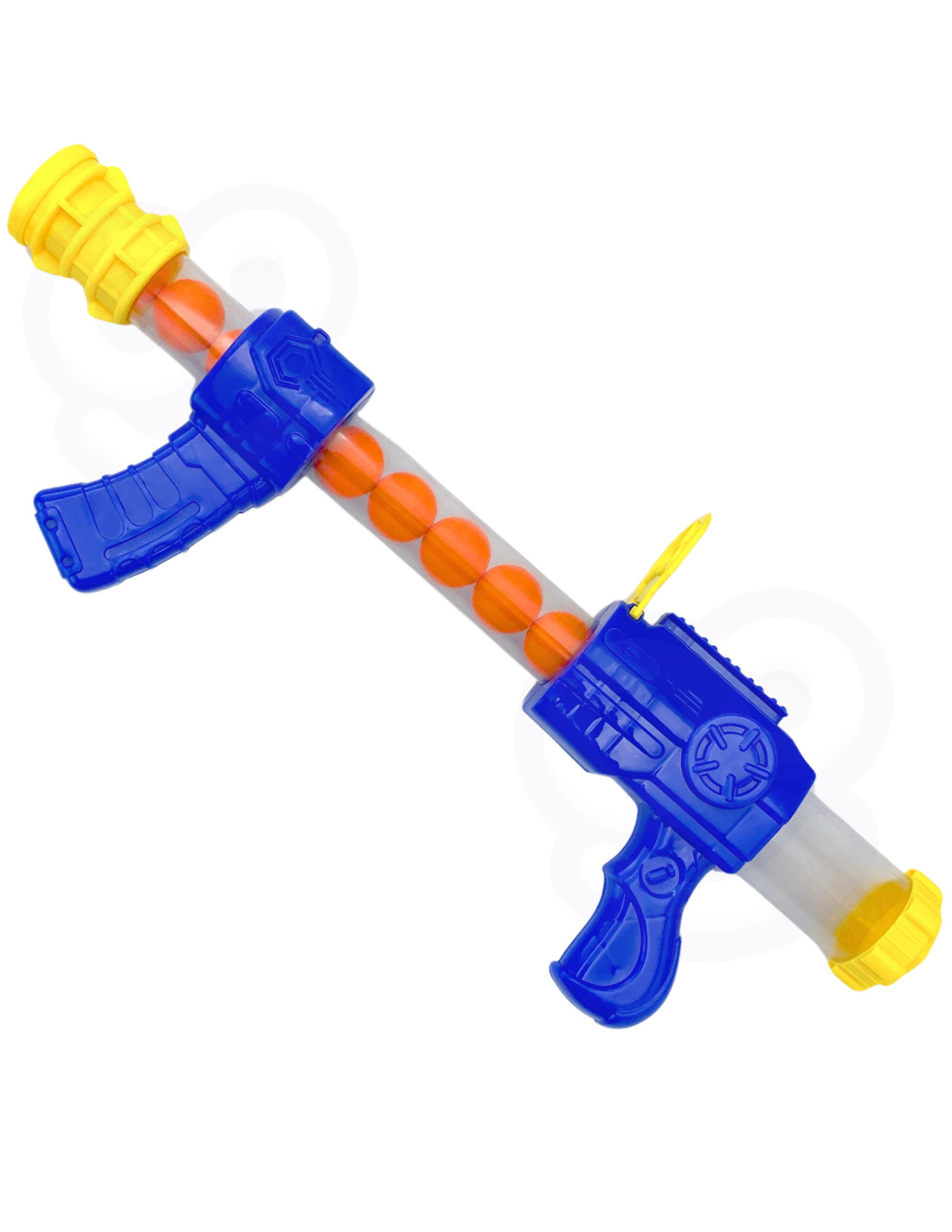 - - pistolet jest zasilany powietrzem, wystarczy więc docisnąć kolbę do siebie po czym odepchnąć ją, a piłeczka wystrzeli