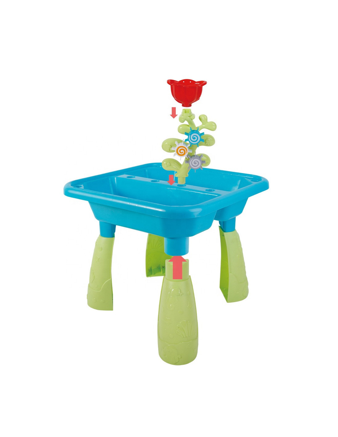 Stół Wodny 2w1 Piaskownica od marki WOOPIE jest idealną zabawka do zabawy z wodą i piaskiem. Zestaw zawiera 14 akcesoriów: 4 foremki, konewkę, młynek i 2 łopatki. Stolik posiada 2 wgłębienia, które jedno wypełnij wodą, a drugie piaskiem, co pozwala na zabawę wszędzie. Dziecko może wlewać wodę do młynka i patrzeć jak woda się przemieszcza. Zestaw jest przeznaczony do zabawy w domu, jak i na zewnątrz. Idealne do zabawy w domu i na plaży lub piaskownicy.