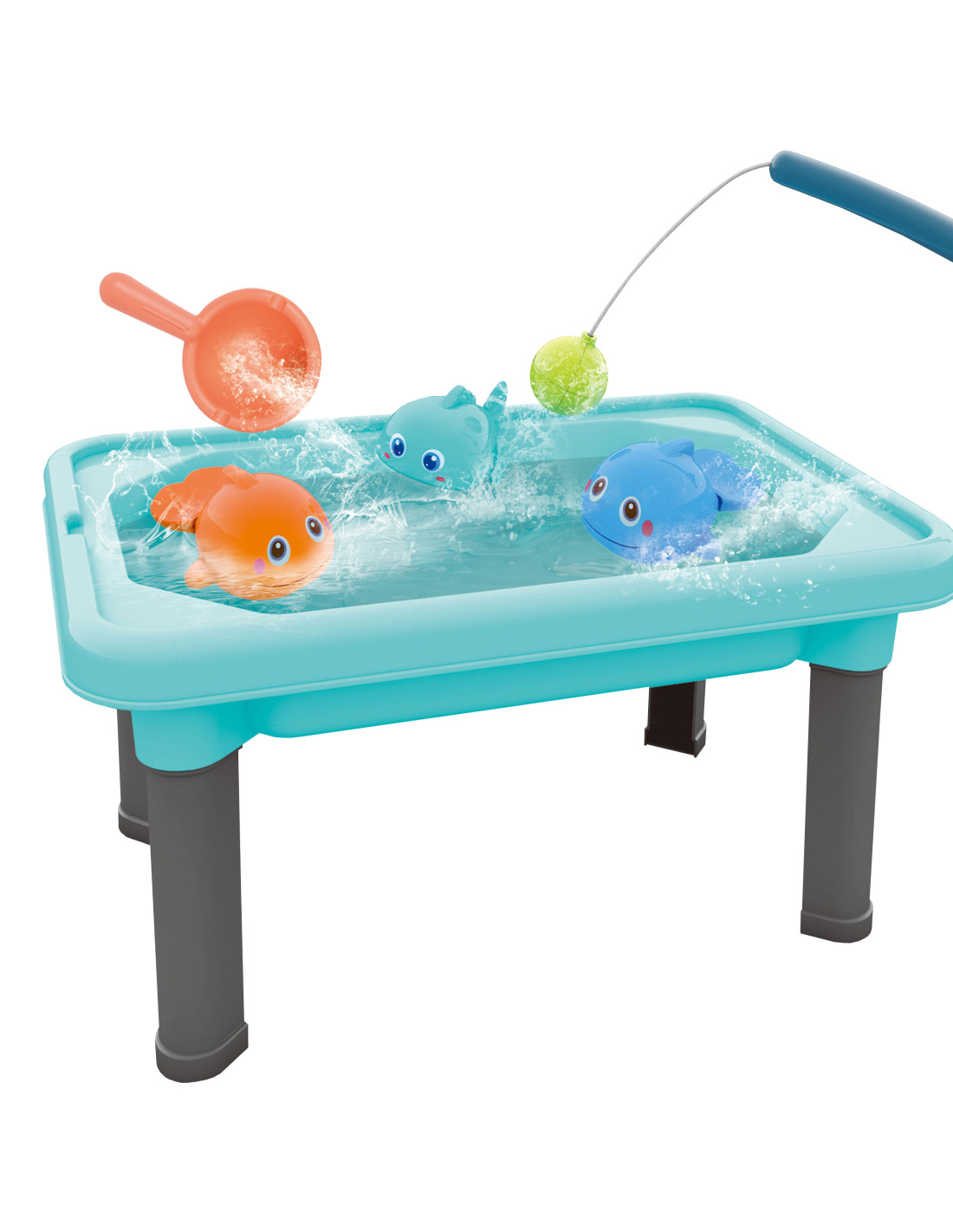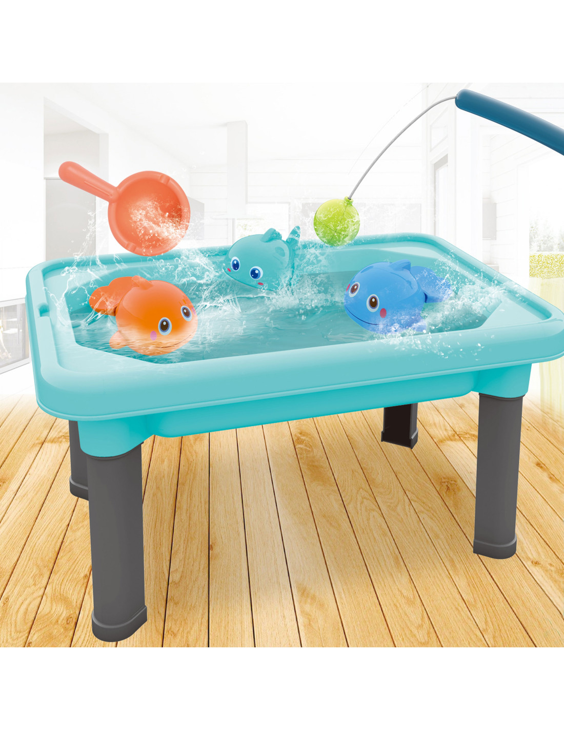 - - 3 w 1: stolik, piaskownica, gra łowienie rybek