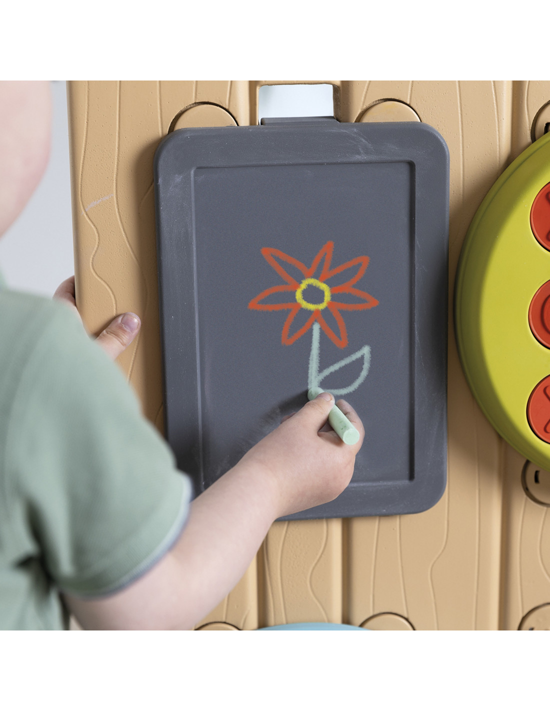 - - sześć aktywności: rynienki, kółko i krzyżyk, tablica do rysowania, piłeczki do rzucania, koło z pozycjami gimnastycznymi.