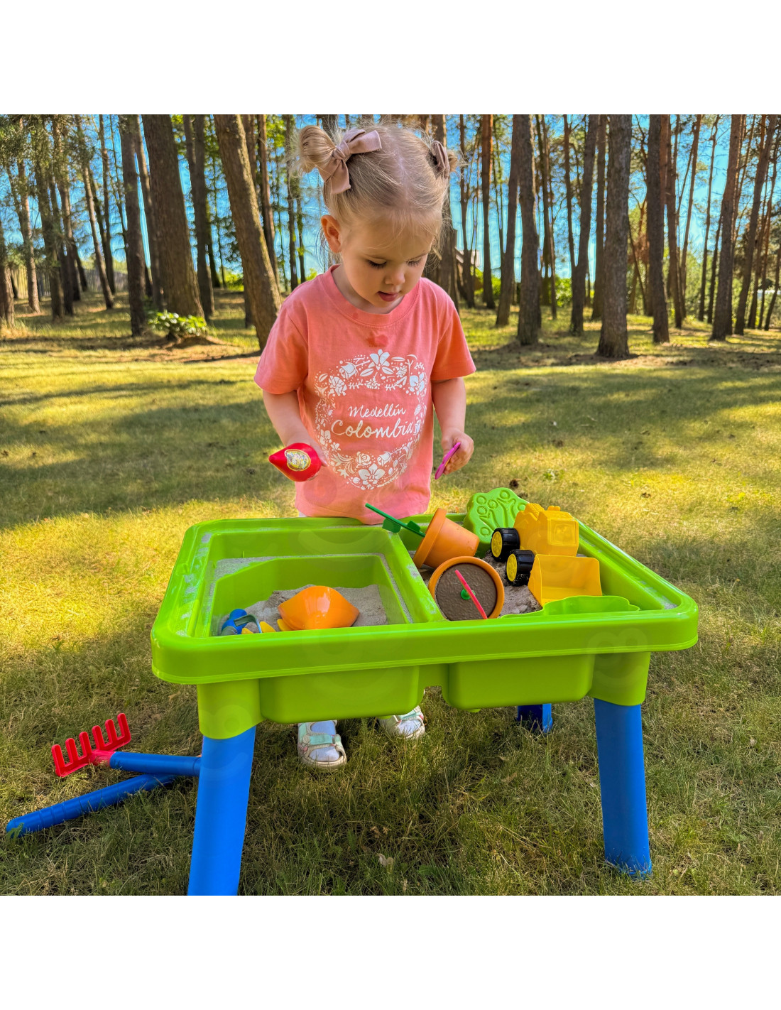 Stół Wodny 2w1 Piaskownica od marki WOOPIE to doskonała zabawka, która zapewni dzieciom niezliczone godziny zabawy z wodą i piaskiem. W skład zestawu wchodzi aż 13 różnorodnych akcesoriów, takich jak: foremka, konewka, koparka oraz dwie łopatki. Stolik posiada dwa wgłębienia – jedno można wypełnić wodą, a drugie piaskiem, co pozwala na kreatywną zabawę w dowolnym miejscu. Zestaw idealnie sprawdza się zarówno w domu, jak i na plaży czy w piaskownicy. Ten wszechstronny zestaw umożliwia dzieciom tworzenie nieograniczonych scenariuszy zabaw, pobudzając ich wyobraźnię i rozwijając umiejętności manualne. Idealny do twórczej zabawy zarówno wewnątrz, jak i na świeżym powietrzu!