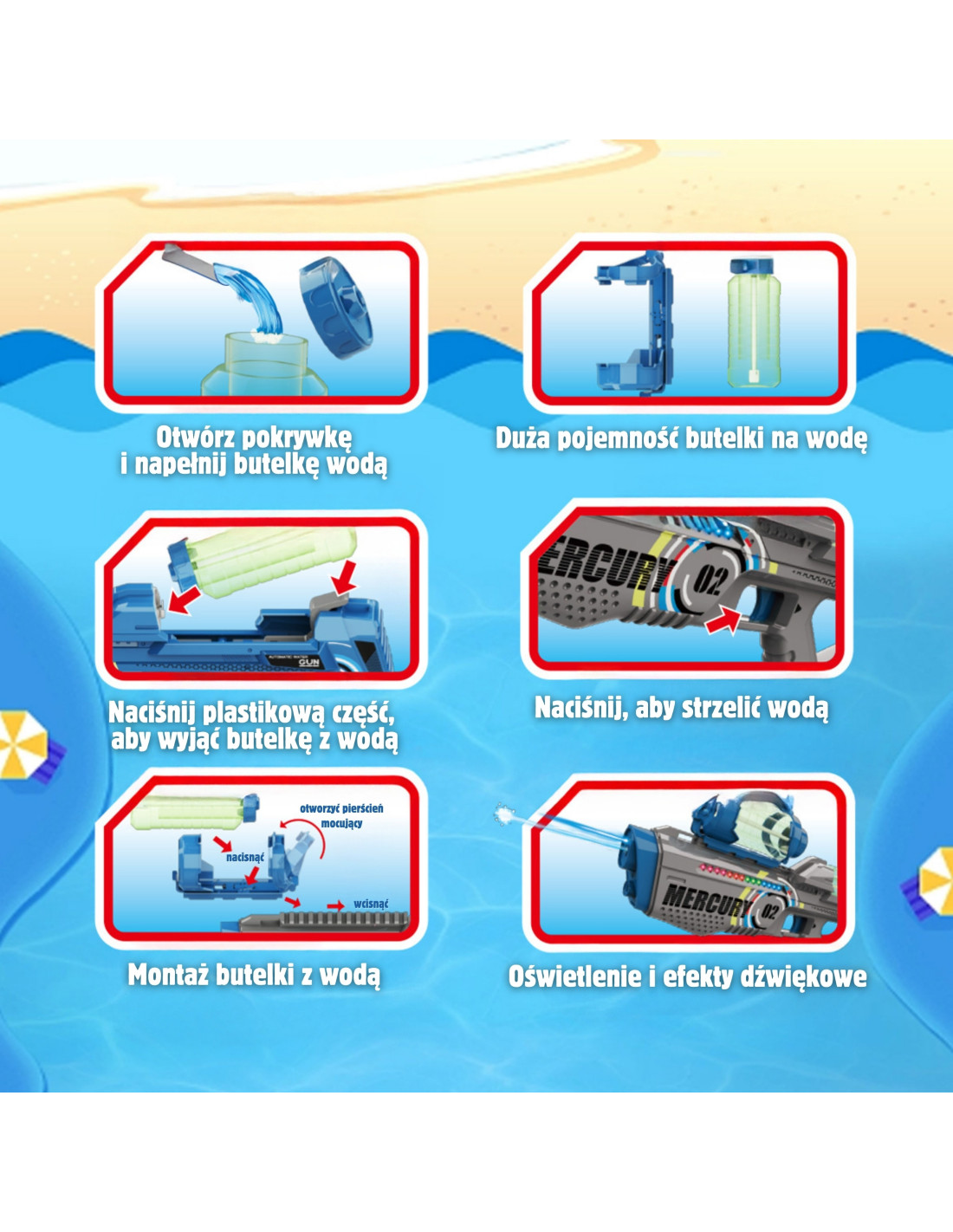 - - Automatyczne strzelanie wodą – bez wysiłku, bez pompowania
