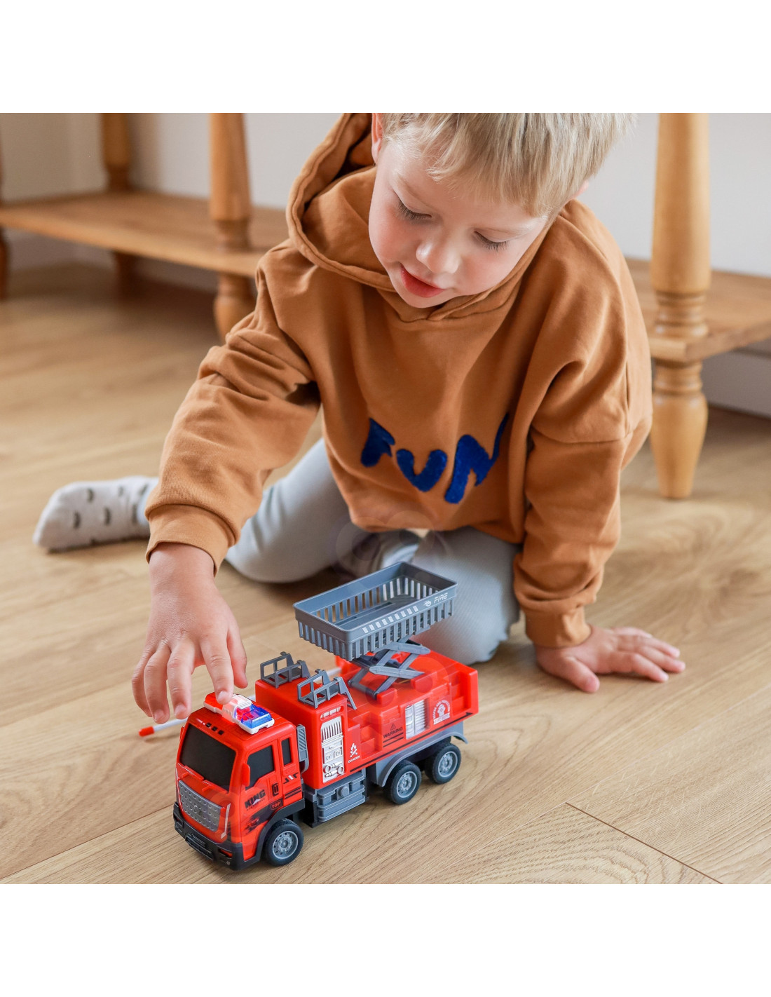 Zdalnie sterowany wóz strażacki to doskonała zabawka, która pozwoli każdemu małemu miłośnikowi pojazdów ratunkowych poczuć się jak prawdziwy bohater. Zabawka została wykonana w skali 1:16. Model wyposażony jest w podnośnik nożycowy idealny do akcji ratunkowych na wysokościach.