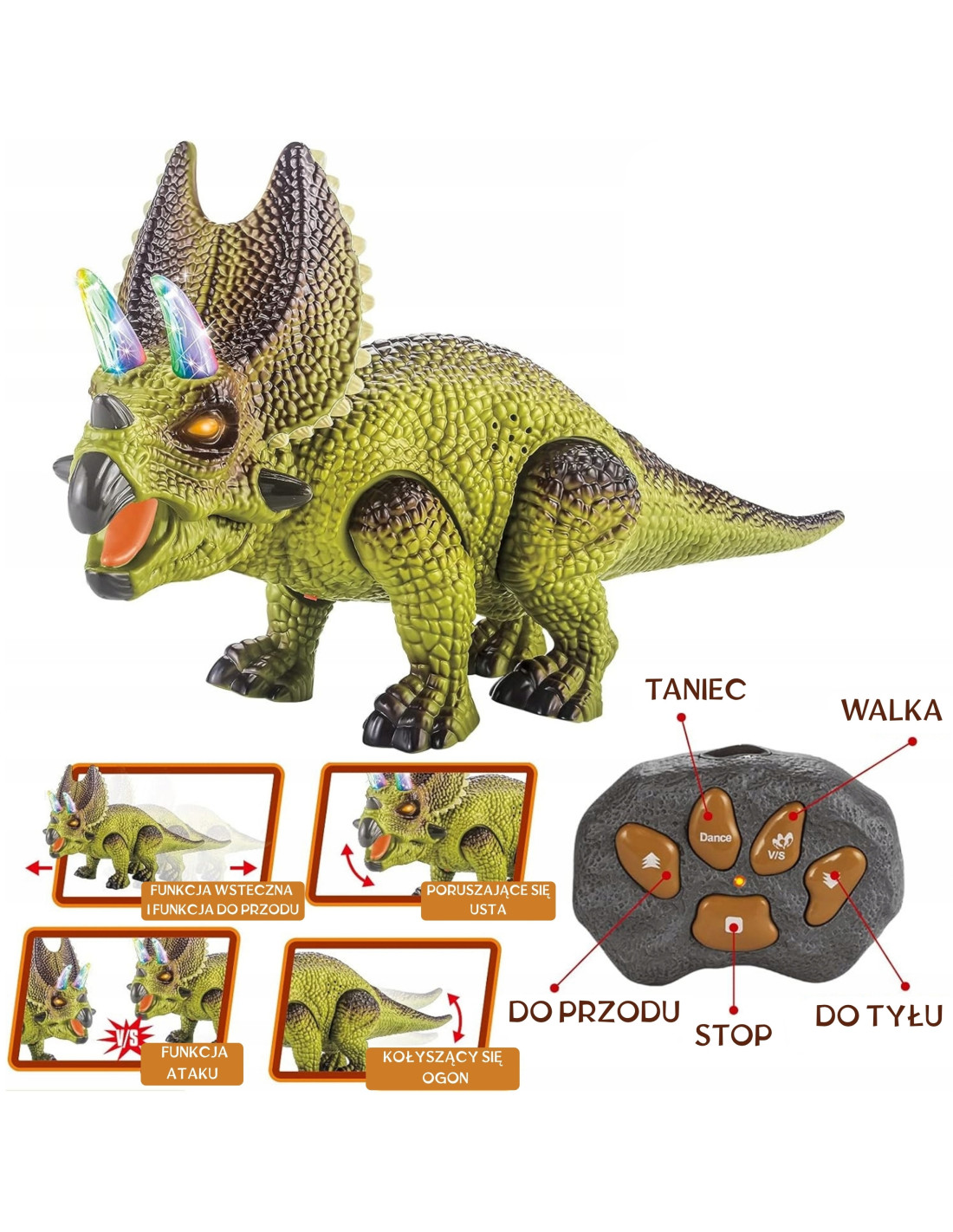 - - Dinozaur porusza się do przodu i do tyłu, imitując chód prawdziwego Triceratopsa