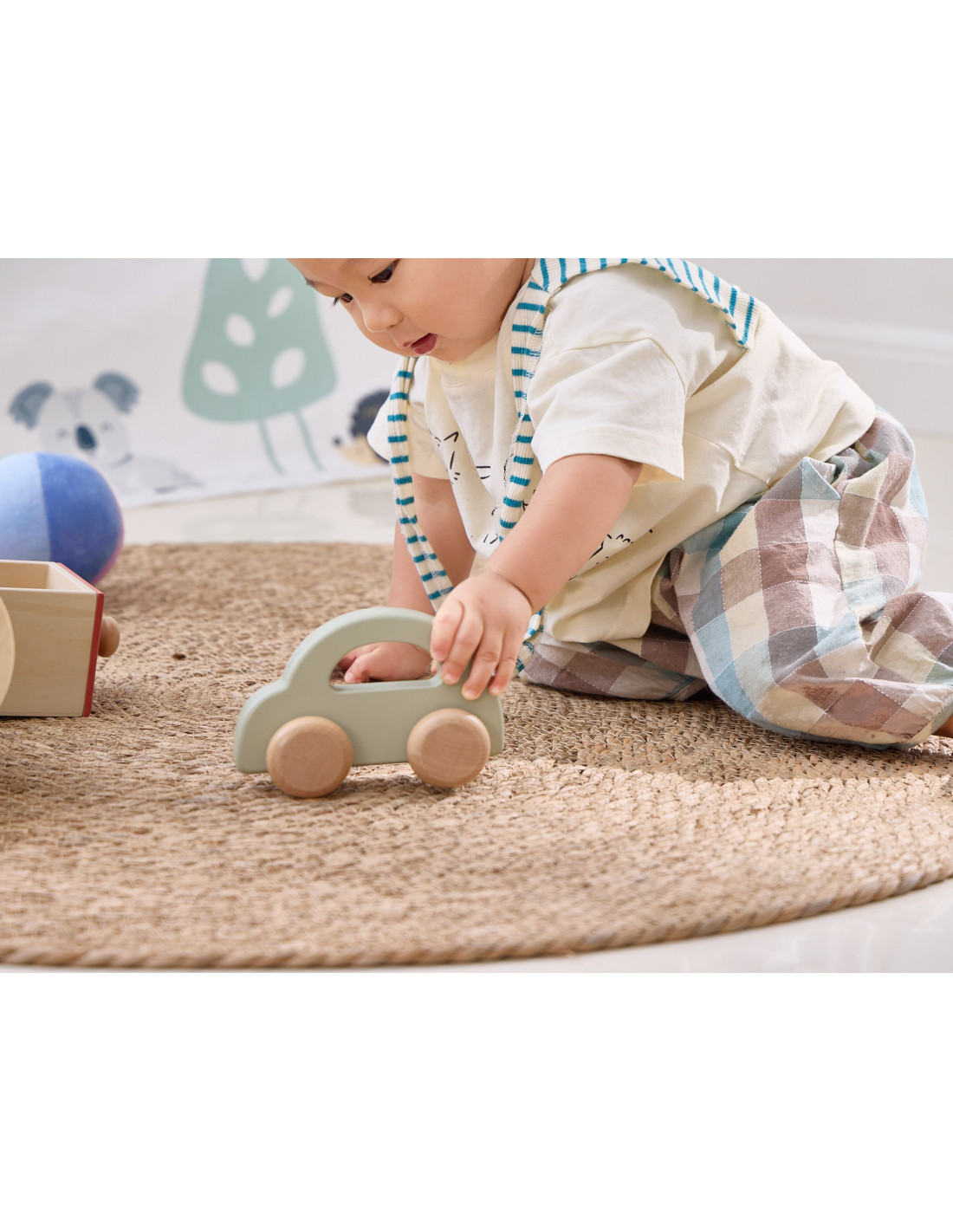 - drewniany samochodzik – łatwy do chwytania, idealny dla małych rączek, świetny do rozwijania umiejętności manipulacyjnych