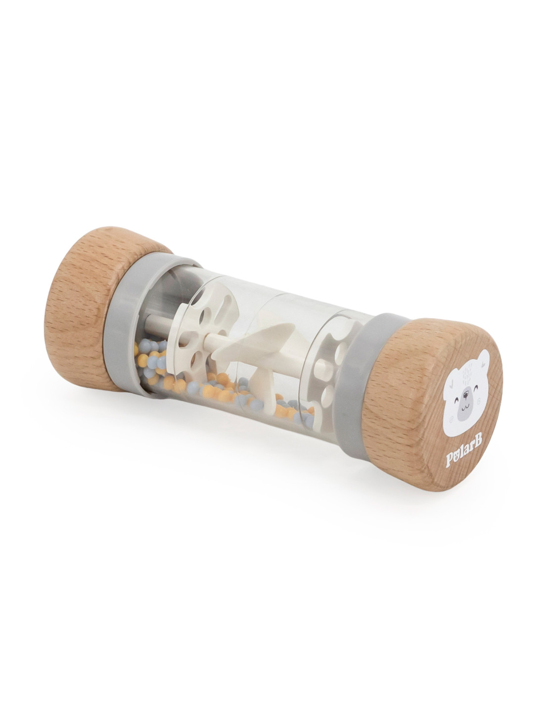 - grzechotka 'deszczowy patyczek' – pomaga rozwijać zmysł słuchu i wspomaga rozwój motoryki małej i dużej
