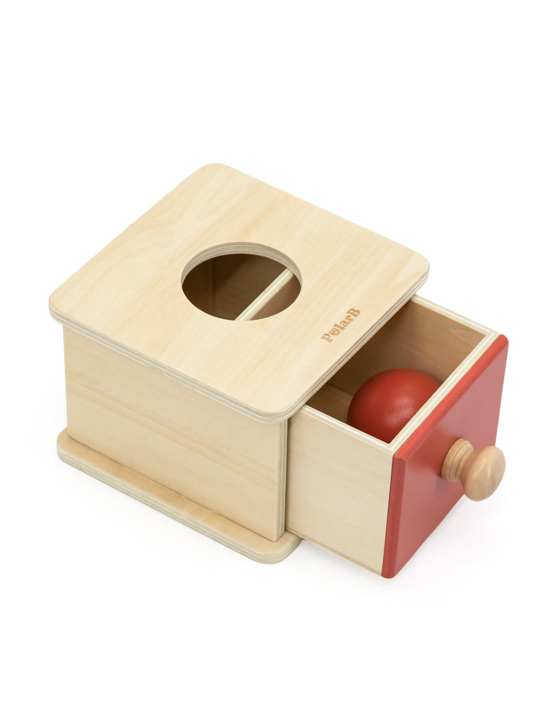 - pudełko z szufladką – wspiera naukę pojęcia stałości przedmiotu, rozwijając umiejętności poznawcze