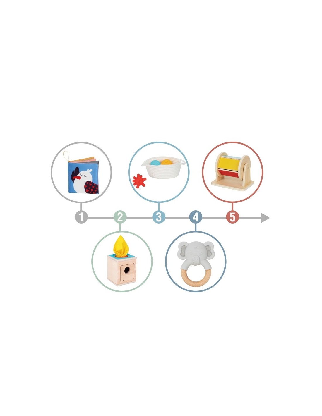 - - zawiera 5 zabawek sensorycznych i dydaktycznych