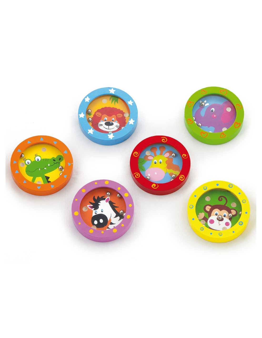 Zabaw się i ucz się z naszymi drewnianymi labiryntami z wesołymi zwierzętami. To nie tylko gra zręcznościowa, ale jednocześnie może spełniać funkcje terapeutyczne. Każda zabawka przedstawia innego przyjaciela ze świata zwierząt, który ma swoje ulubione kolory i wzory. Dziecko musi dopasować małe kuleczki do odpowiednich otworów, co wymaga skupienia i logicznego myślenia. Zabawka jest mała i lekka, więc można ją zabrać ze sobą i bawić się w dowolnym miejscu. Zabawka jest wykonana z wysokiej jakości drewna i pokryta nietoksycznymi farbami, co zapewnia bezpieczeństwo i trwałość.