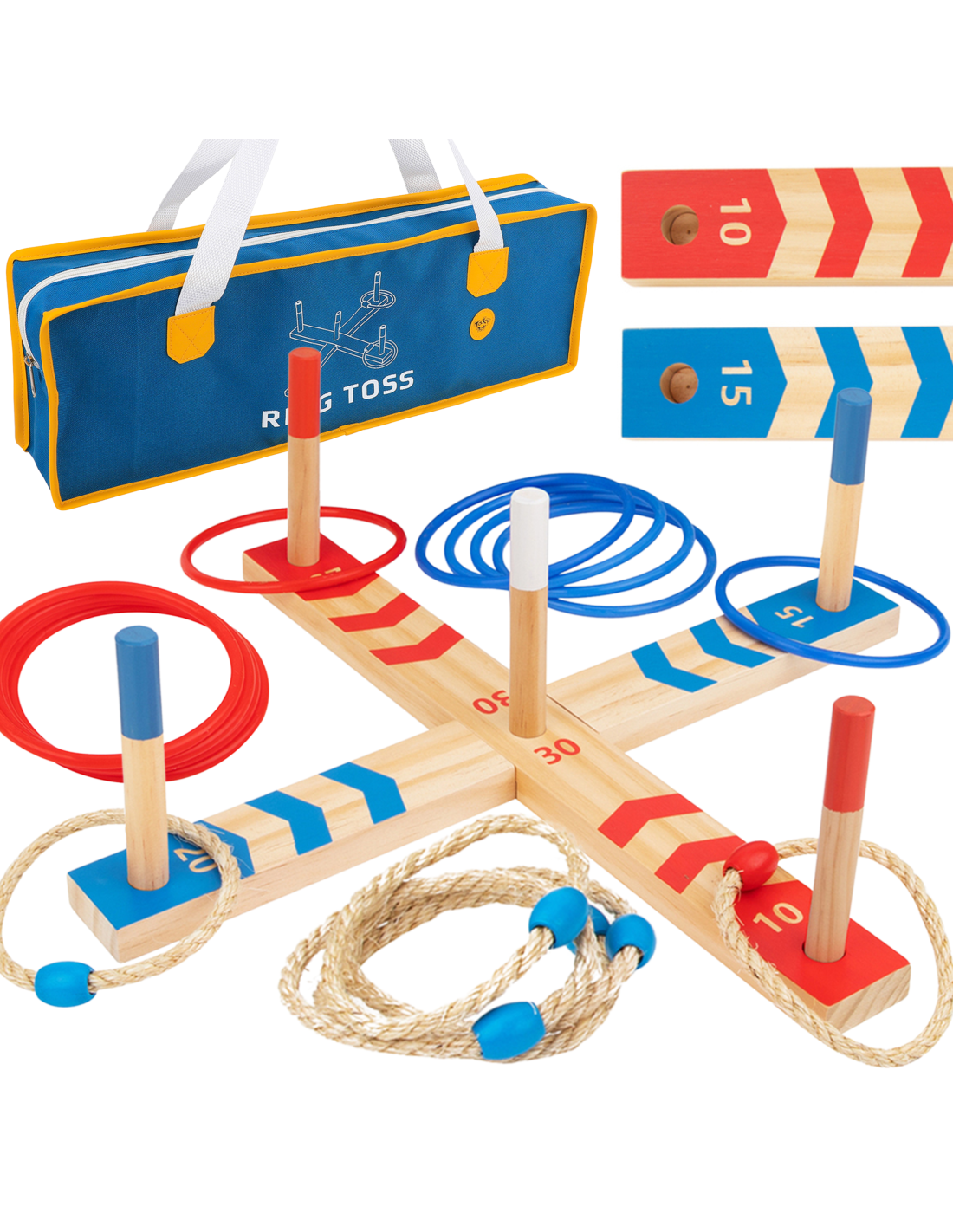 Drewniana Gra Serso Rzut Pierścieniem od marki Tooky Toy to gra zręcznościowa dla całej rodziny i przyjaciół, pozwalająca aktywnie spędzić czas na świeżym powietrzu, a nawet w domu! Dzięki niej twoje dziecko rozwinie umiejętności manualne i umysłowe tj. refleks, celność i koncentracja. Gra łatwa w montażu i demontażu.