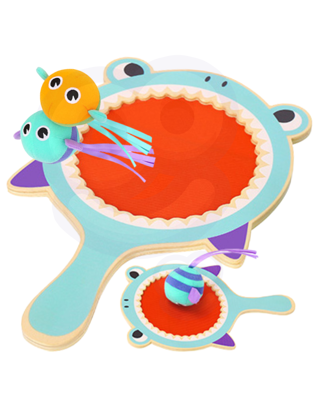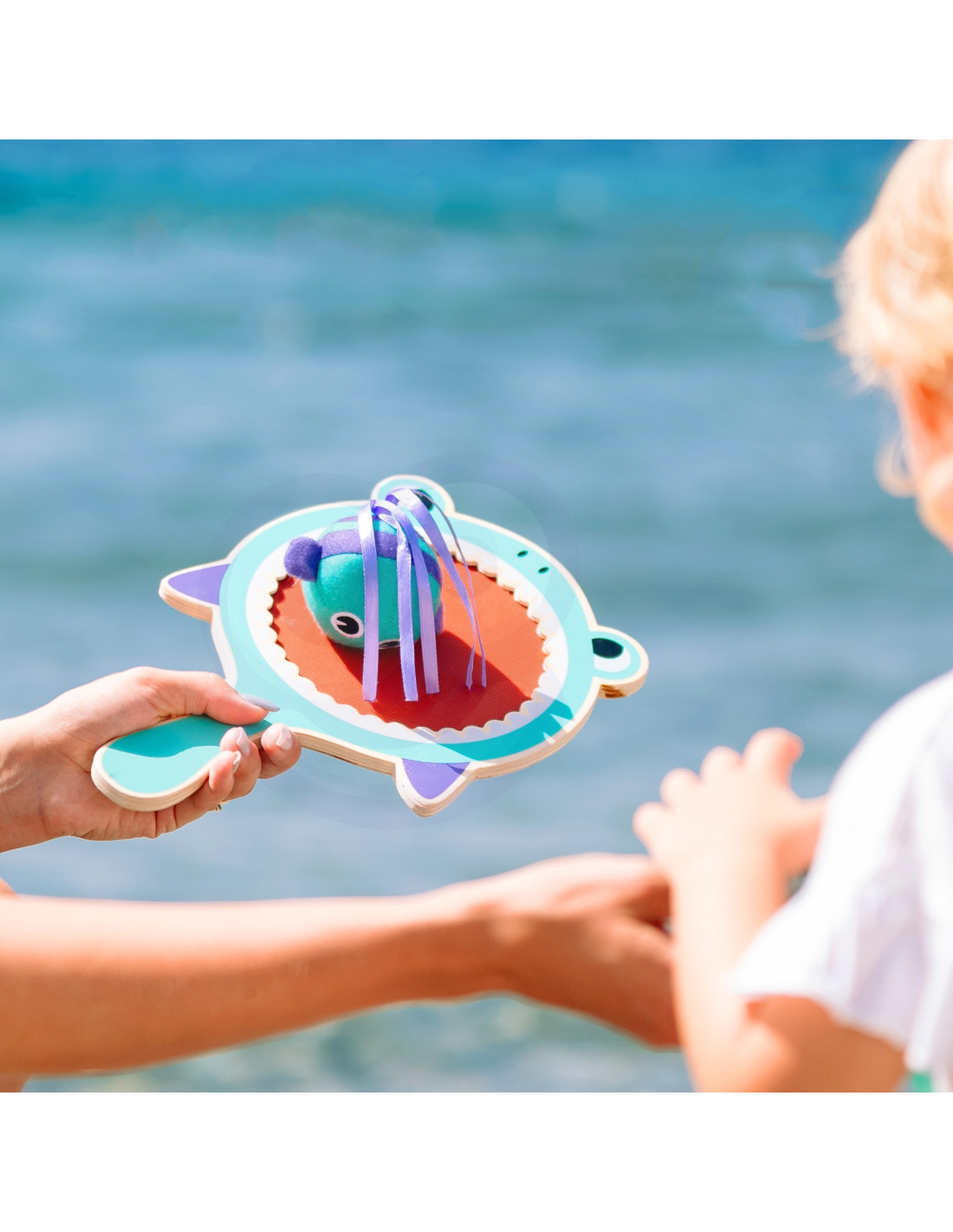 Gra CATCH BALL od marki WOOPIE z serii GREEN to zabawa dla każdego i wszędzie! Zestaw zawiera paletkę wyglądającą jak rekin z rzepem + 2 miękki kolorowe rybki. Zabawa polega na złapaniu piłek/rybek na paletkę na rzepy. Grać można samemu lub z przyjaciółmi np. jedna lub 2 osoby rzucają, a jedna łapie. Grać można wszędzie - w domu i na dworze. Żywe kolory przyciągną wzrok każdego dziecka i zaangażują w aktywną zabawę. Dodatkowo plusem jest brak ostrych krawędzi dzięki czemu jest produkt jest bezpieczny dla naszych pociech. Poprzez tę grę pielęgnowana jest praca zespołowa i rywalizacja, a jednocześnie rozwijane są zdolności motoryczne dziecka.