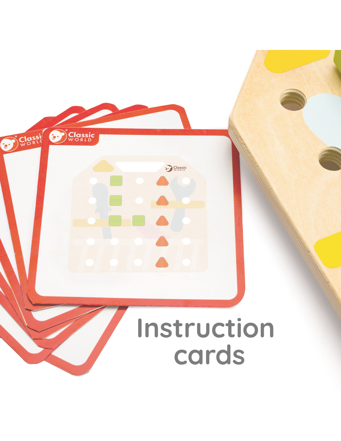 Drewniana tablica ze śrubkami od marki CLASSIC WORLD jest zabawką stworzoną z myślą o rozwoju dziecka poprzez dobrą zabawę. Gra polega na wkręcaniu śrubek do tablicy tworząc z nich różne kształty. Zestaw zawiera m.in. karty ze wzorami, które dziecko może wykonać w zabawie np. "na pamięć" razem z rodzicem.