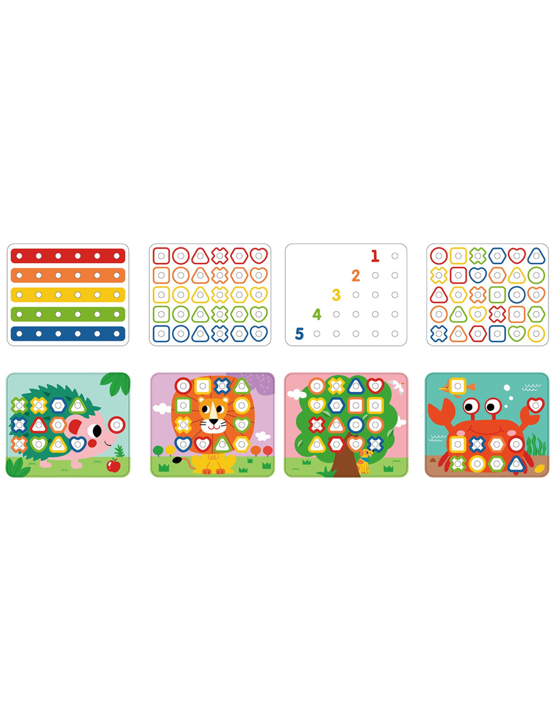 Zestaw Kołków od marki TOOKY TOY to wielofunkcyjna zabawka, która pozwoli rozwinąć kreatywność, logiczne myślenie oraz koncentrację na wiele sposobów. Budowanie, dopasowanie, sortowanie, nawlekanie w jednym zestawie. W zestawie znajdują się kołeczki, które dziecko może wciskać w drewnianą planszę, a na już wciśniętych kołeczkach można dokładać belki budować wielopoziomowe konstrukcje. Każdy z 30 kołeczków jest inny od pozostałych kolorem lub kształtem, a na 8 kartach plansz znajdują się symbole do odnajdowania odpowiedniego kołeczka. Dodatkowo w zestawie znajduje się drewniana igła ze sznureczkiem do nawlekania. Bardzo ciekawa propozycja dla każdego, kto poszukuje wielofunkcyjnego zestawu, który wspomoże rozwój umysłowy i manualny dziecka.