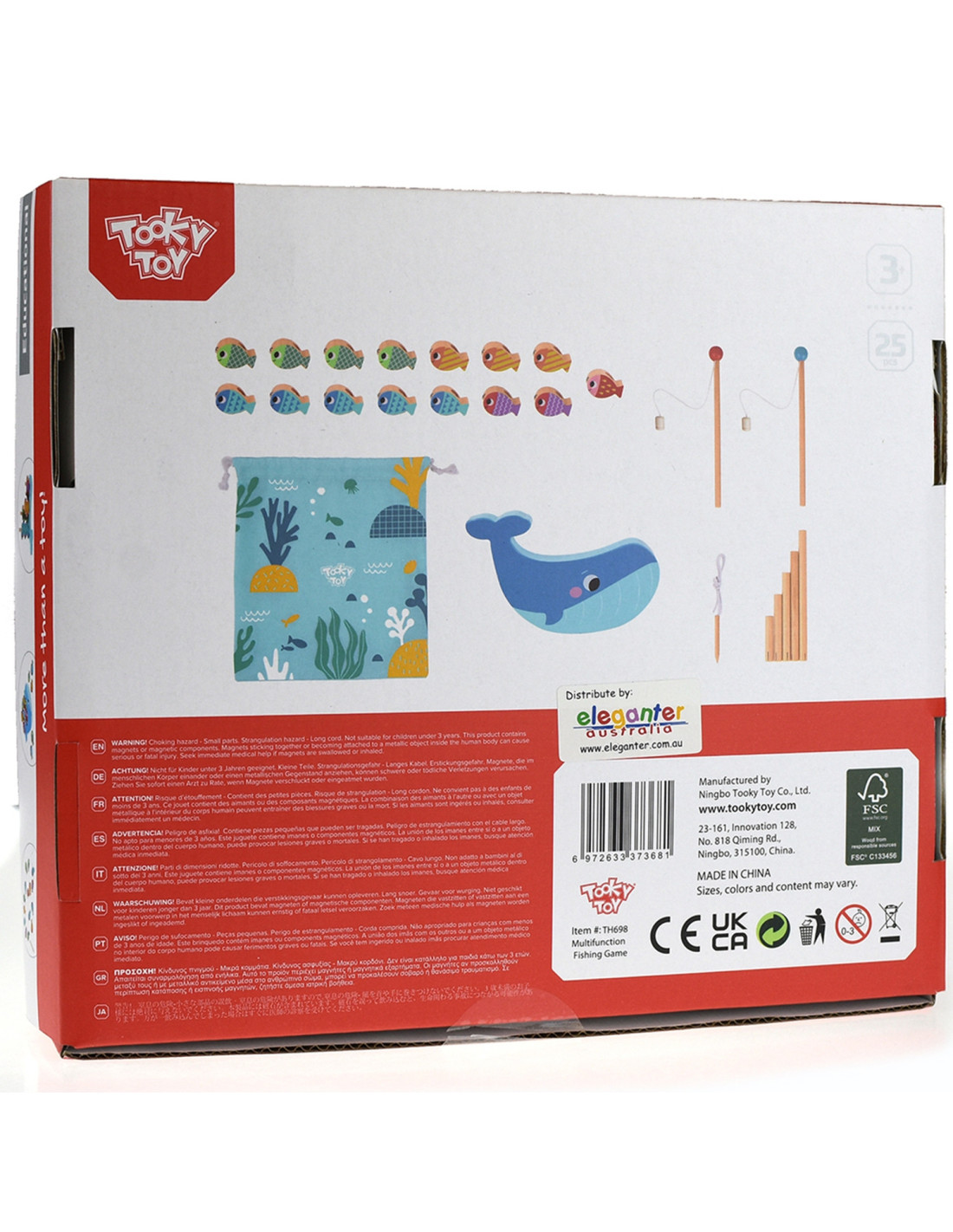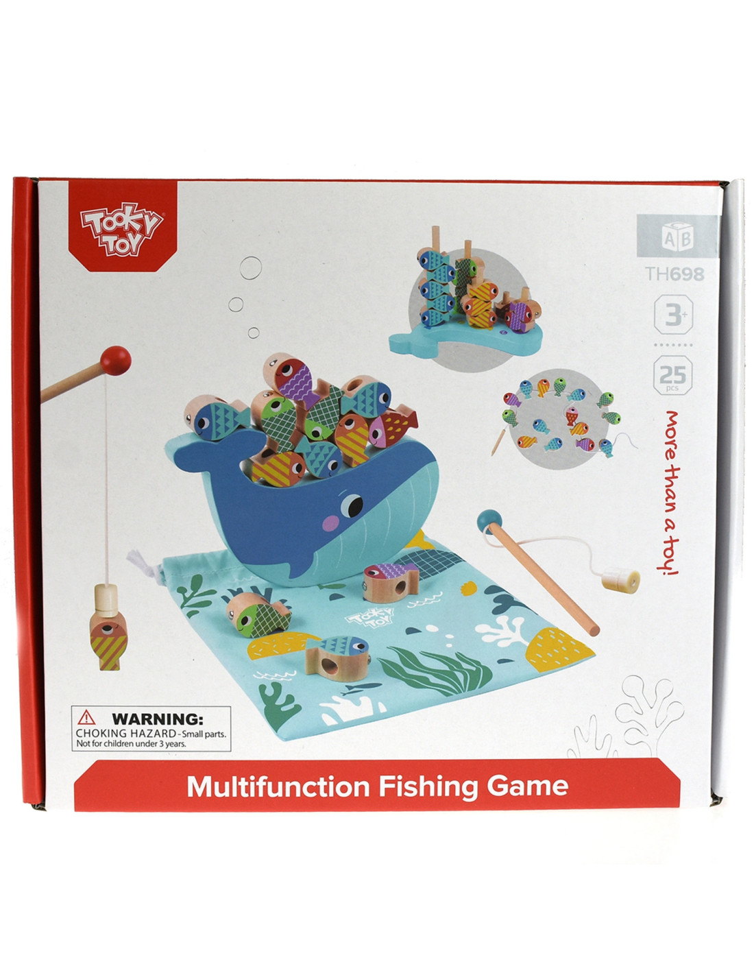 TOOKY TOY Drewniana Gra Wieloryb i Rybki Wielofunkcyjna 4 w 1 jest ulepszoną wersją klasycznej magnetycznej gry wędkarskiej, która została rozszerzona o dodatkowe tryby gier. Dzięki różnym trybom gry, można w bardzo łatwy i szybki sposób przejść od jednej gry do innej. Niezależnie od tego czy w naszej grze będzie element rywalizacji, to możemy być pewni, że dziecko będzie pracować nad koordynacją wzrokowo-ruchową.