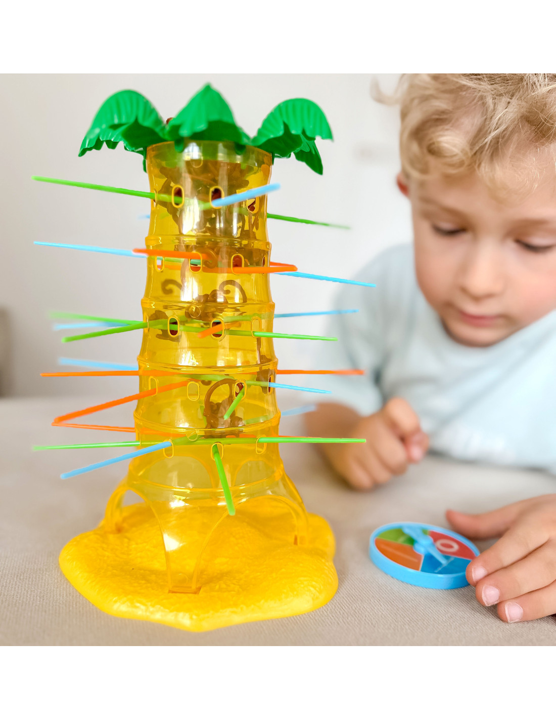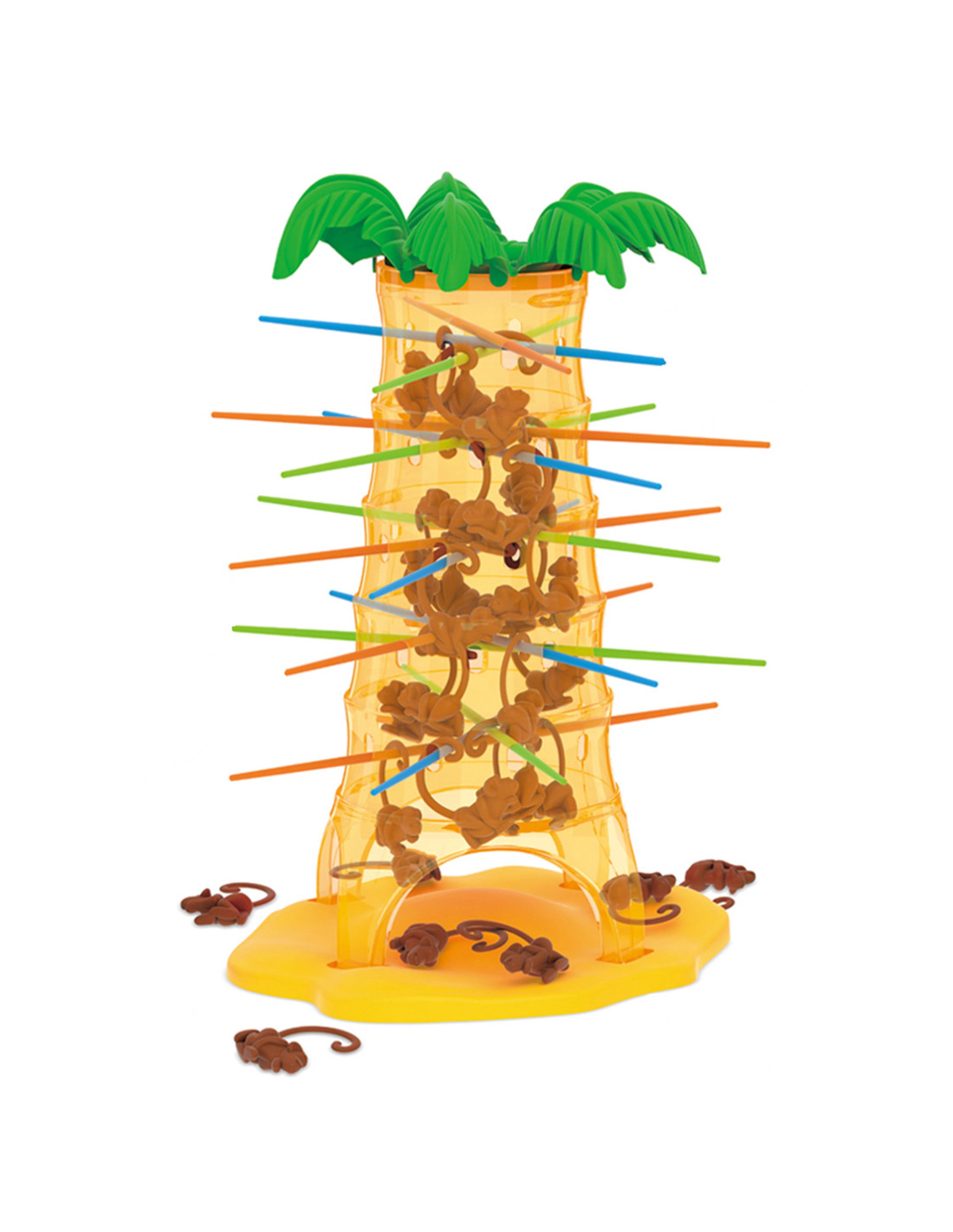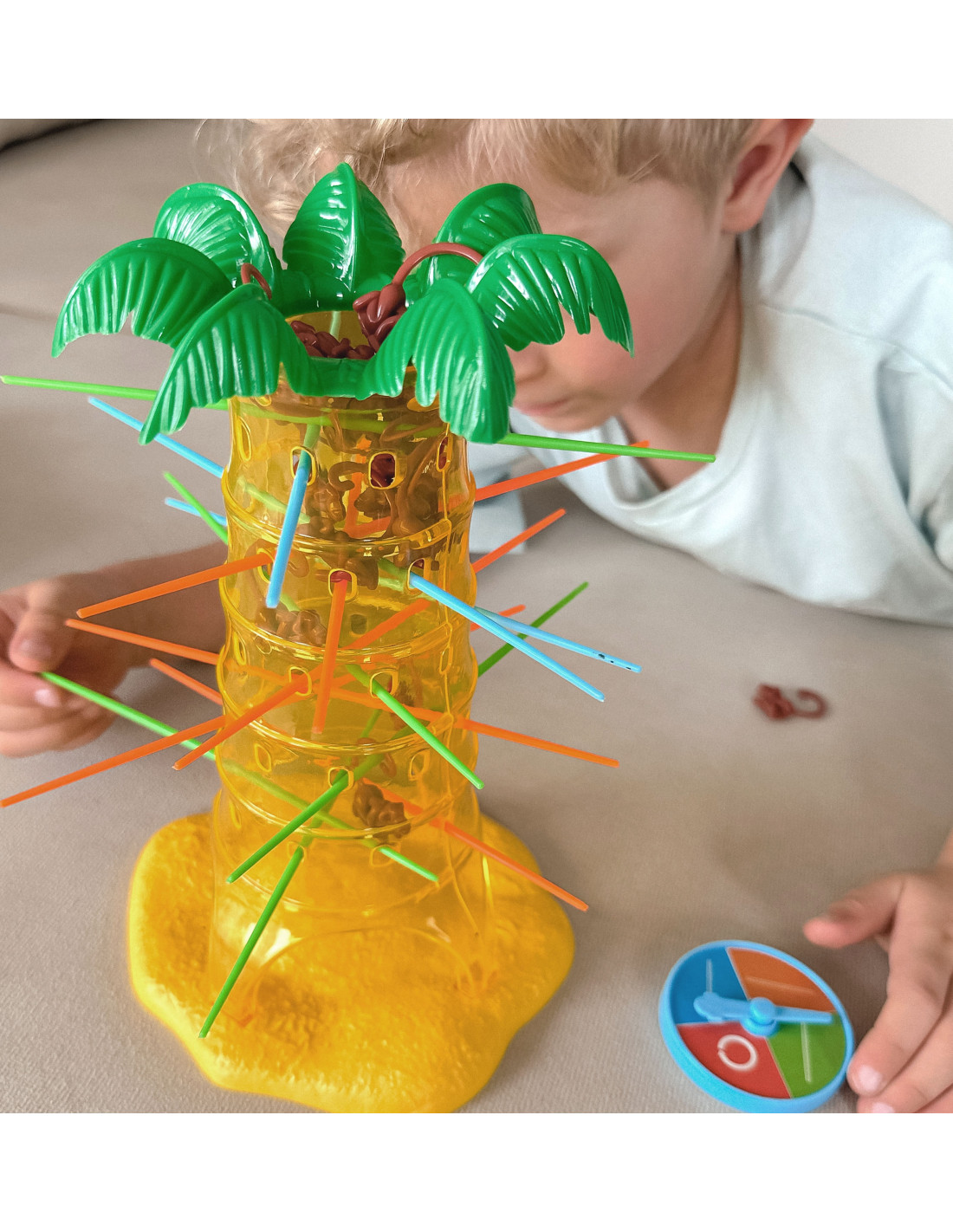 - - zestaw zawiera: palma z otworkami, kolorowe koło ze strzałką, 18 patyczków, 20 małpek, instrukcję