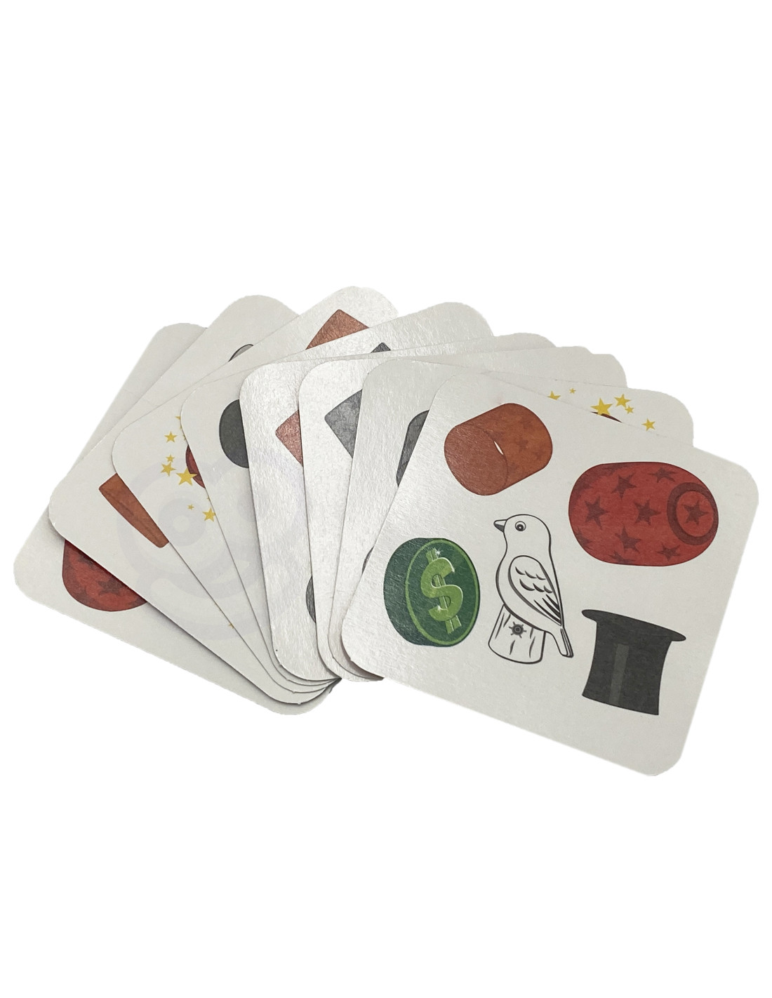 - Każdy z graczy otrzymuje zestaw składający się z magicznych rekwizytów zapakowanych w kapelusz magika