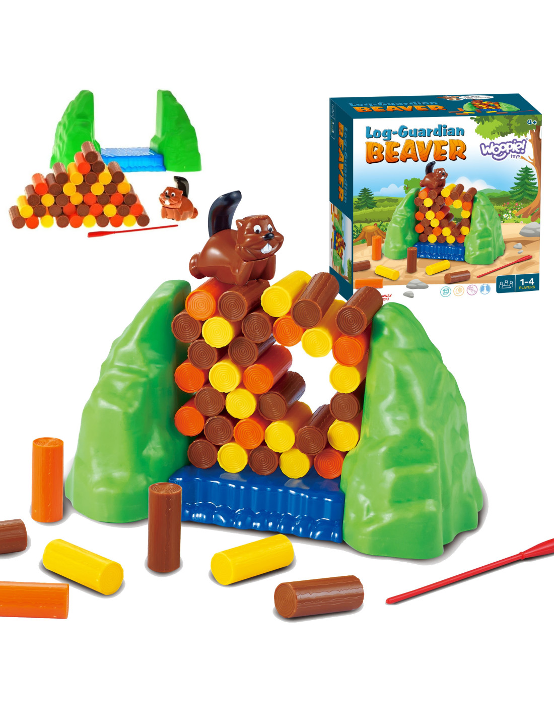 Gra zręcznościowa dla całej rodziny marki WOOPIE, proste zasady, logiczne myślenie i zabawa dla osób w każdym wieku to podstawowe cechy tej gry. Zbuduj tamę. Na górze ustaw bobra, a następnie wyciągajcie po kolei kłody ze ściany. Kiedy ściana runie gra się kończy. Podczas zabawy maluch nauczy się koncentracji, strategii i rozwiązywania problemów, a także poprawi koordynację ręka-oko.