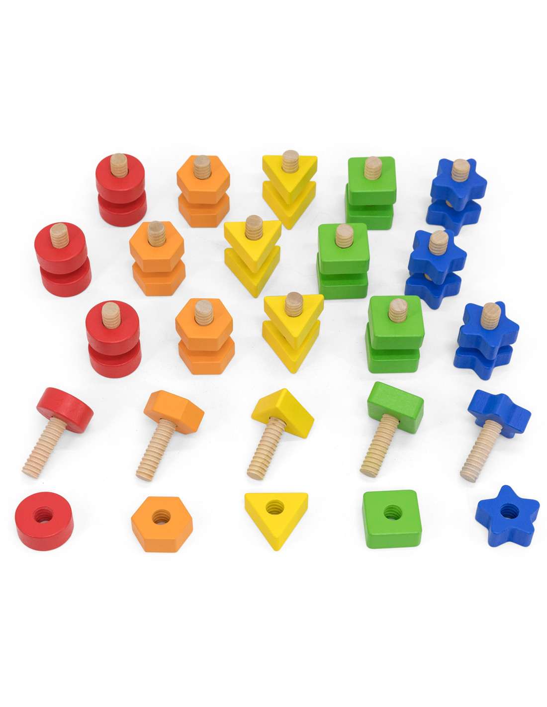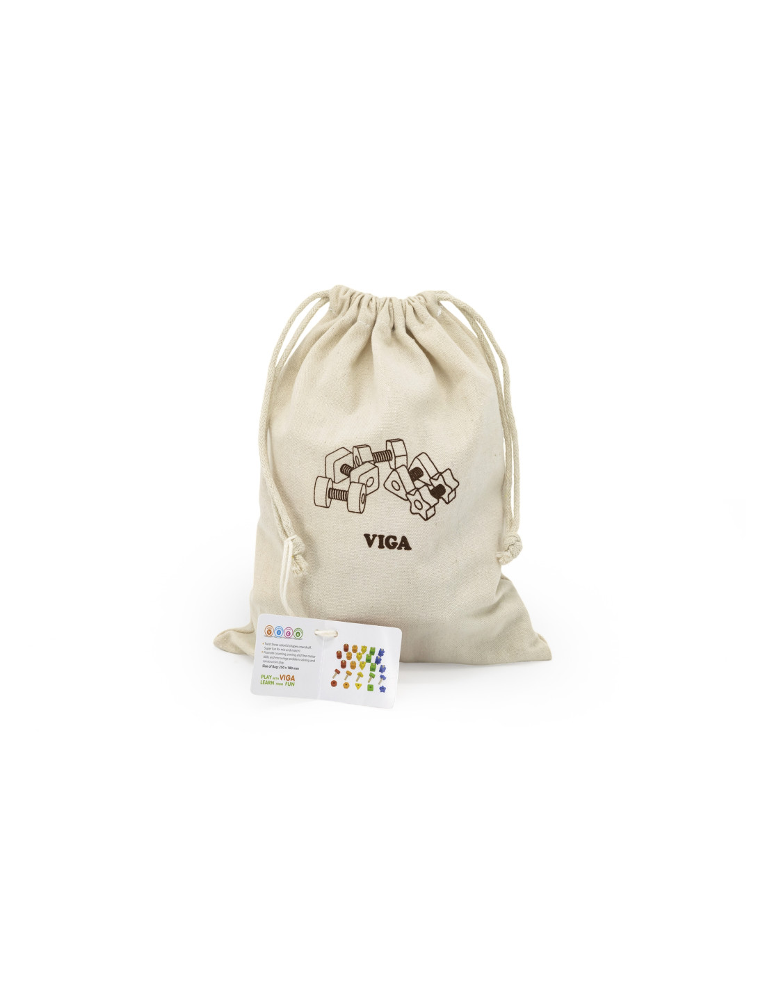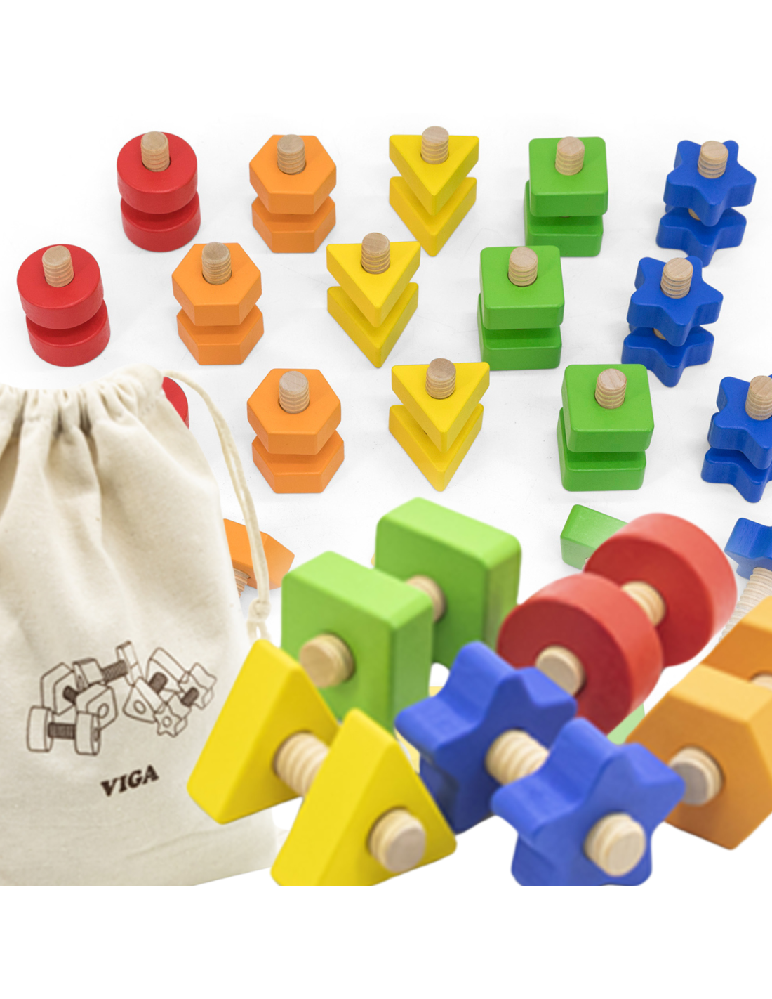 Nakrędki i i Śrubki to zabawka zręcznościowa marki VIGA polegająca na wkręcaniu, wykręcaniu kolorowych kształtów. Świetna zabawa dla dziecka podczas mieszania i dopasowywania a przy okazji ucząca liczenia, kolorów i kształtów. Wkręcanie i odkręcanie poprawi u malucha zręczność manualną i wzrokową koordynację ruchową Zestaw zawiera 40 elementów, 20 par nakrętek i śrub w 5 jaskrawych kolorach i kształtach oraz bawełnianą torbę ułatwiającą przechowywanie.