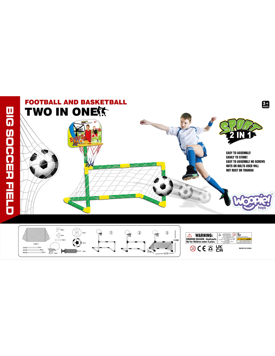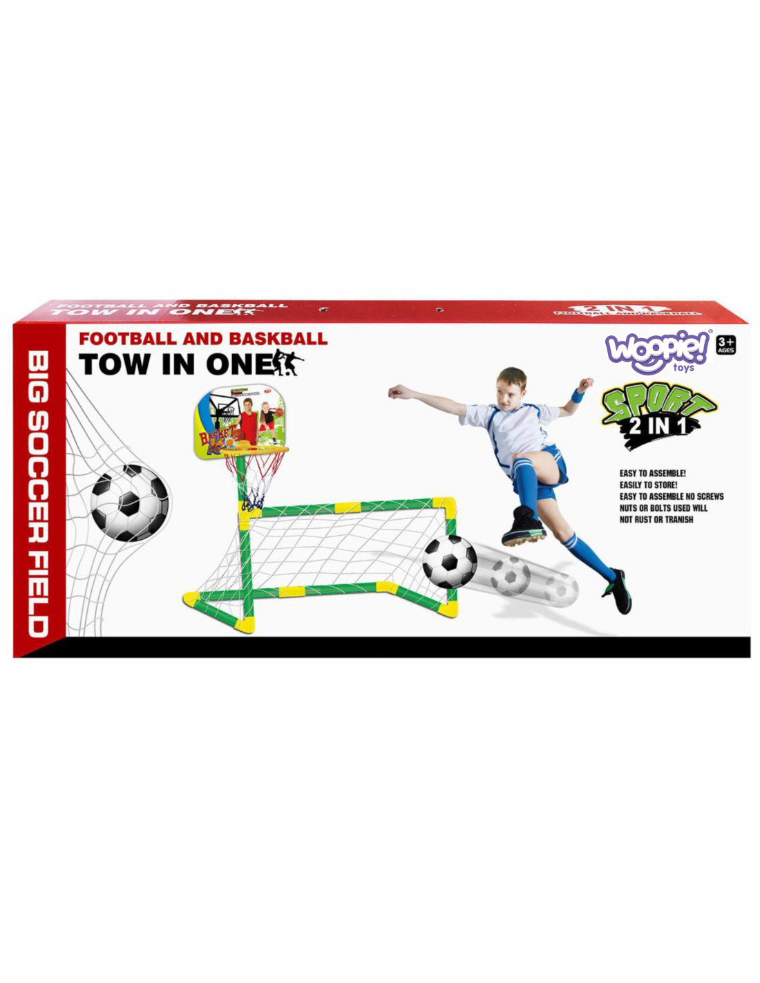 Zestaw sportowy 2w1 koszykówka i bramka marki Woopie jest super połączeniem sportowym dla najmłodszych dzieci! Dziecko może wybrać w co w danej chwili chce zabrać. Dziecko może grać samo lub z przyjaciółmi w piłkę nożną albo w koszykówkę - nigdy nie będzie się nudzić! Zestaw na pewno zachęca Twoje dziecko do uprawiania sportu. Aktywność dostarczy twojemu dziecku rozwój tzw. dużej motoryki, co jest idealne dla prawidłowego rozwoju dziecka.