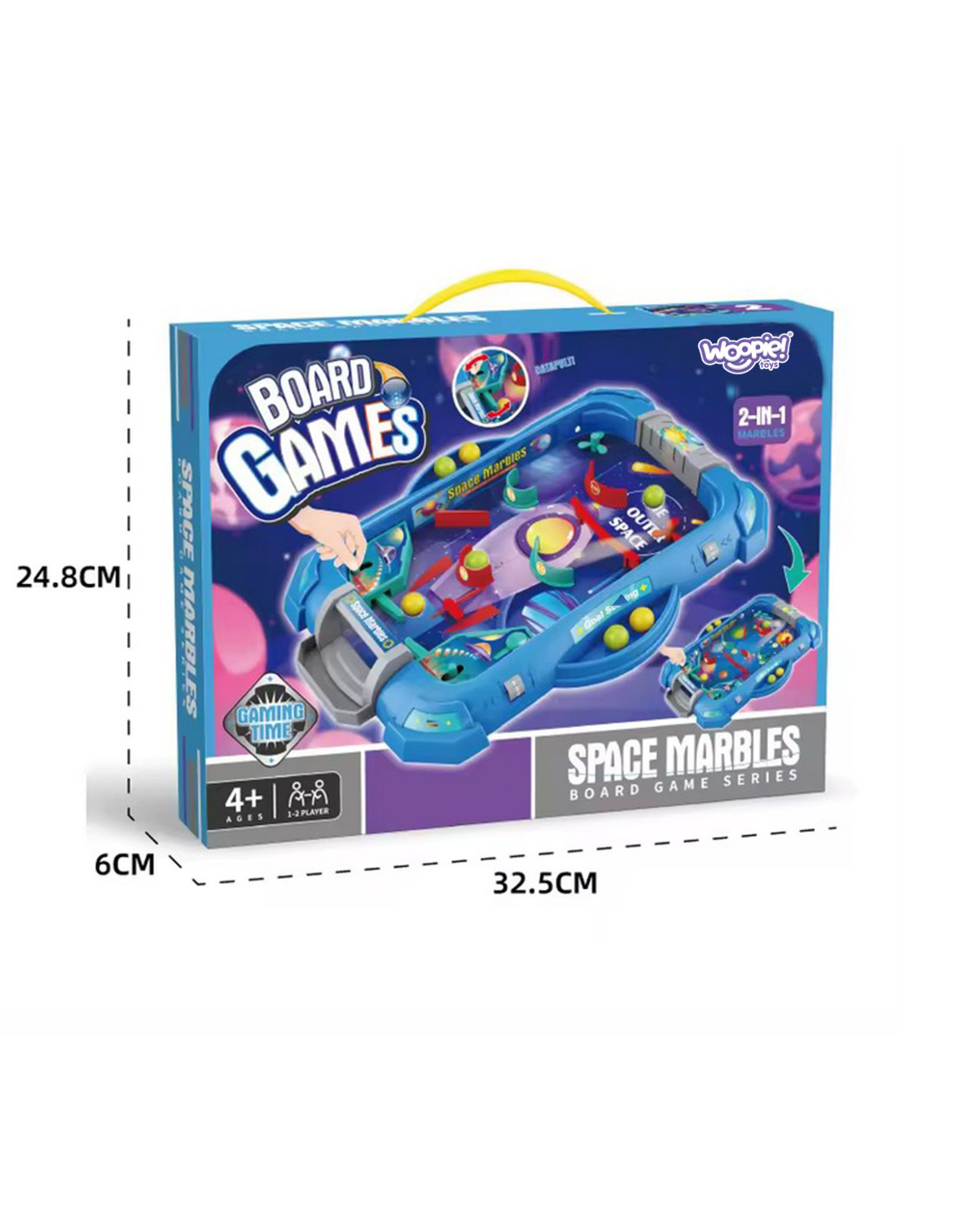 Gra Zręcznościowa Flipper " Kosmiczna Rozgrywka" od marki WOOPIE to świetny pomysł na dobrą zabawę dla twojego dziecka. To popularna gra zręcznościowa zaprojektowana do zabawy zarówno w pojedynkę jak i w większej grupie graczy. Przypomina prawdziwy automat Flipper co dodaje atrakcyjności zabawce! Celem gry jest zdobycie jak największej liczby punktów, wykorzystując różne ruchy i strategie. Proste zasady i kolorowe elementy przyciągają uwagę najmłodszych i sprawiają wiele radości z rozgrywki. Zabawka wykonana jest starannie, całość komponuje się rewelacyjne - na pewno spodoba się każdemu małemu fanowi tej gry. Zasady są proste! wystarczy że samodzielnie złożysz planszę - nie jest to nic trudnego. Wystarczy w odpowiednie dziurki na planszy, wcisnąć elementy do gry. Teraz możesz zacząć odbijać kulkę!