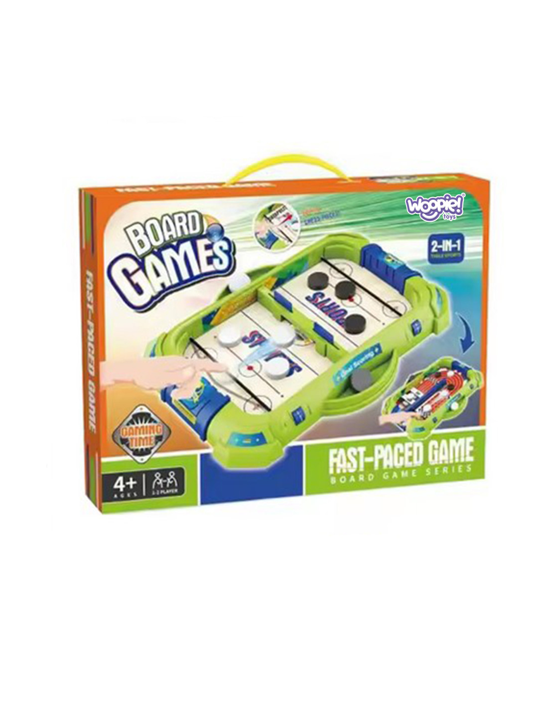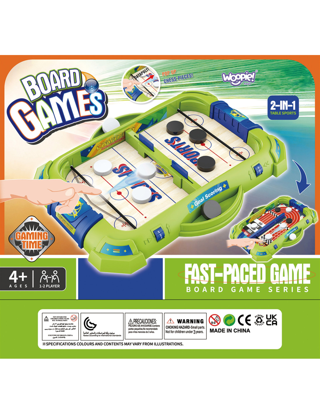 Gra zręcznościowa 2w1 od marki WOOPIE to innowacyjna gra, łącząca w sobie dwie dyscypliny: mini hokej oraz pinball. Obydwie mini gry mają pozytywny wpływ na rozwój dziecka, rozbudzają wyobraźnię, myślenie strategiczne i planowanie. To wspaniała rozrywka dla całej rodziny jak i samodzielnej gry. Dzięki unikalnemu i kolorowemu designowi ta gra od razu przyciąga uwagę małego dziecka, oferując gwarantowaną rozrywkę na długo!