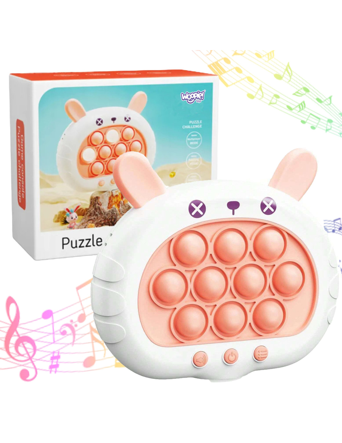 Gra POP IT Króliczek to zabawka antystresowa, która sprawdzi się już dla najmłodszych. Gra wydaje radosne dźwięki, które zachęcają dzieci do zabawy i urozmaicają rozgrywkę. Zabawka jest niewielka więc, sprawia, że możemy zabrać ją ze sobą. Pop It sprawia frajdę dzieciom oraz dorosłym, którzy chętnie po nią sięgają. Rozwija umysł, zdolności manualne, koordynację wzrokowo-ruchową oraz trenuje spostrzegawczość i pomaga w walce ze stresem.