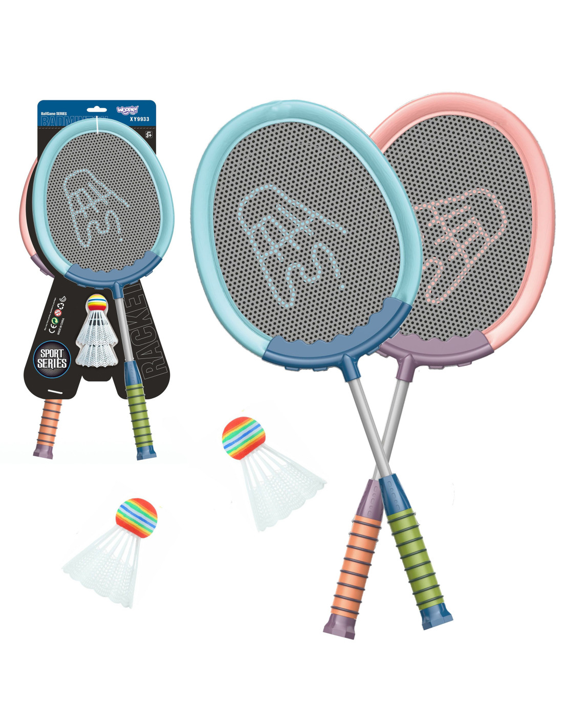 Zestaw Rakietek od marki Woopie z pewnością zachęci dzieci i dorosłych do spędzania czasu aktywnie na świeżym powietrzu. Gra w badmintona rozwija zdolności motoryczne dziecka tzw. "dużą motorykę". Rakietki posiadają wygodny uchwyt idealny dla rączek dzieci oraz dzięki elastycznej siatce pozwalają na dalsze uderzenia.