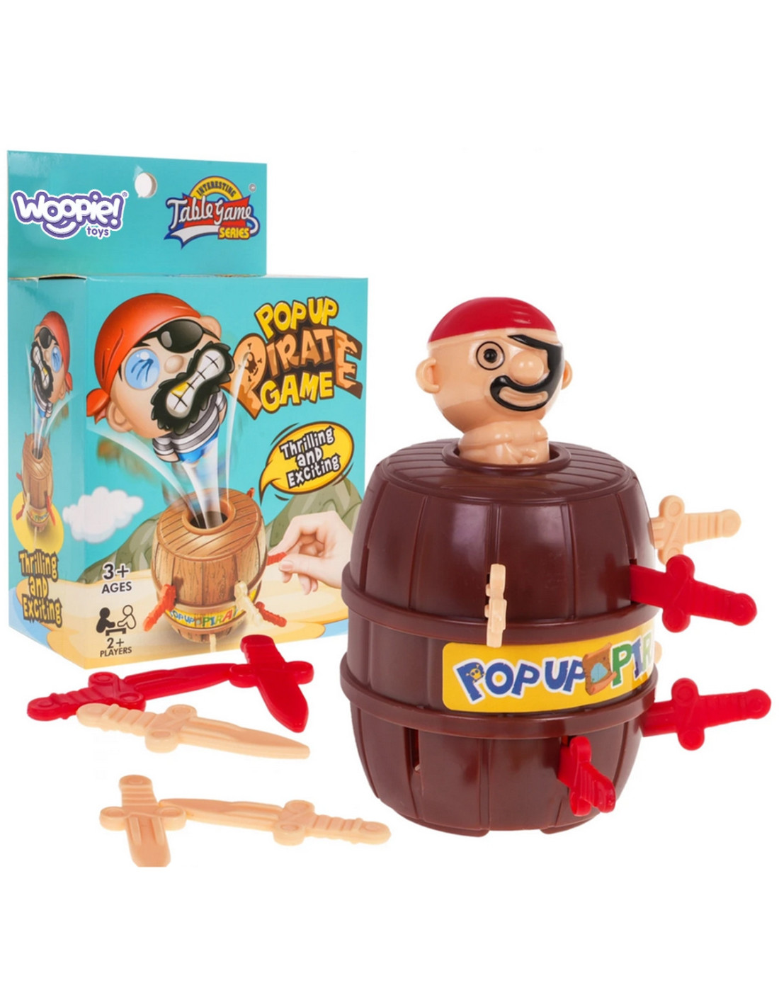 Umieść pirata w beczce w taki sposób, aby na wierzchu wystawała jego głowa. Przekręć kilkukrotnie. Rozdaj każdemu z graczy miecze w równej ilości. Każda z osób po kolei wkłada po jednym mieczu w otwór beczki. Uważaj, żeby nie ukłuć pirata. Ugodzony, mieczem pirat wystrzeli z beczki niczym z procy, a ty przegrywasz. Wygrywa osoba, która jako pierwsza włoży w beczkę wszystkie swoje miecze lub włoży więcej mieczy od pozostałych uczestników gry, zanim pirat wyskoczy z beczki.