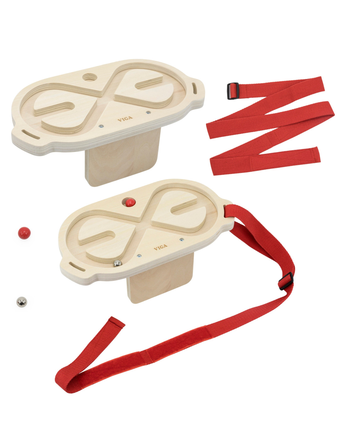 VIGA Zestaw labiryntów do balansowania ciałem to innowacyjna gra ruchowa, która angażuje całe ciało, rozwijając koordynację i równowagę. Dzięki dwóm drewnianym labiryntom i kulkom o różnej masie, zabawa staje się ekscytującym wyzwaniem dla dzieci. Gracze zakładają pas z labiryntem na talię, klatkę piersiową, nogi lub ramiona, a następnie poruszają ciałem, aby wprawić kulkę w ruch i przeprowadzić ją przez labirynt. Zabawki można używać samodzielnie lub rywalizować w parach, co dodaje zabawie dynamiki i integruje uczestników.