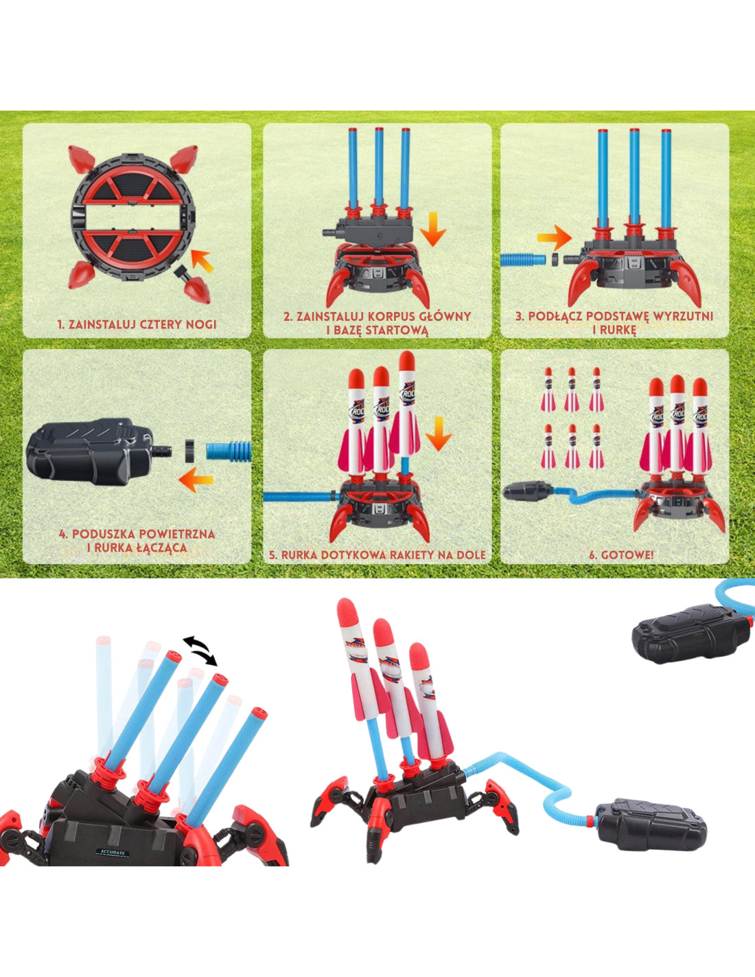 - - Napędzana powietrzem pompa nożna – wystarczy nacisnąć, aby rakieta wzbiła się w niebo,