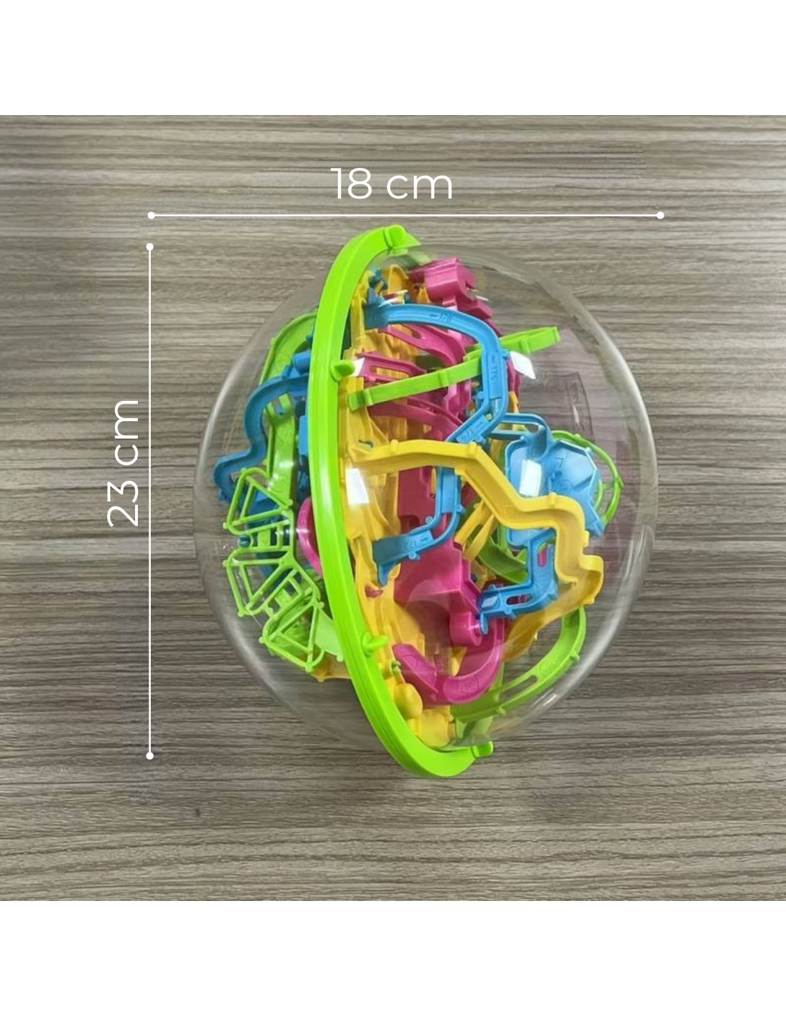 - - Przestrzenny labirynt 3D w przezroczystej kuli z licznymi przeszkodami i zakrętami