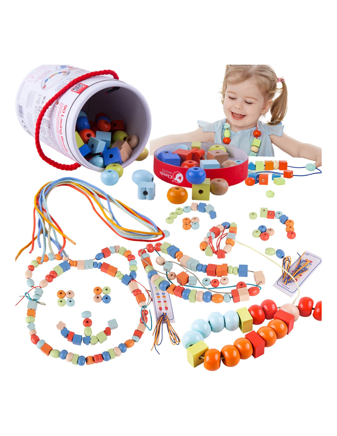 - - Kolorowy zestaw koralików do nawlekania.